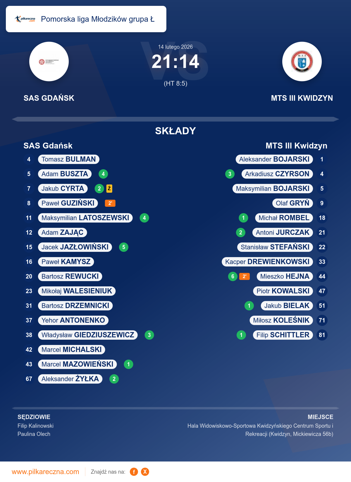 Sędziowali: Filip Kalinowski, Paulina Olech