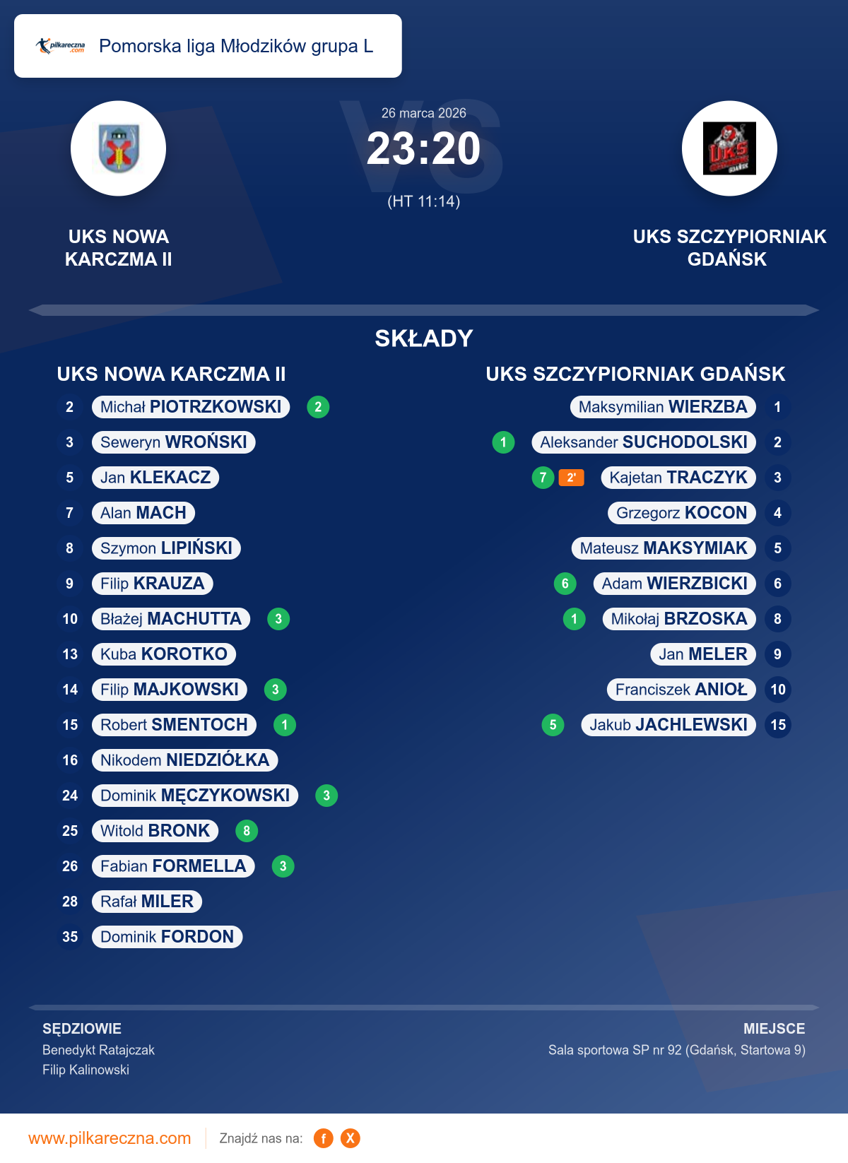 UKS NOWA KARCZMA II 23–20 UKS SZCZYPIORNIAK GDAŃSK