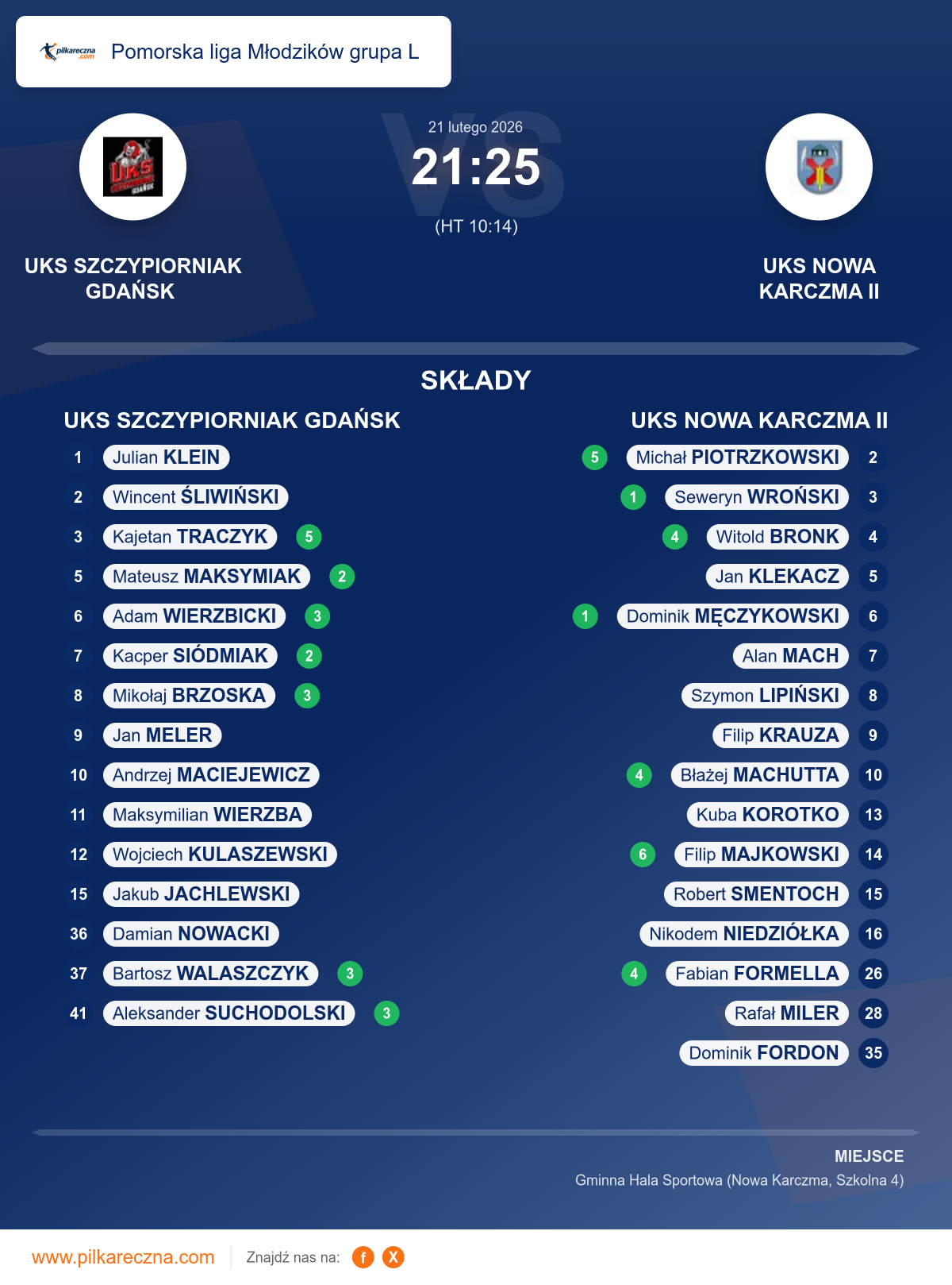 UKS SZCZYPIORNIAK GDAŃSK 21–25 UKS NOWA KARCZMA II