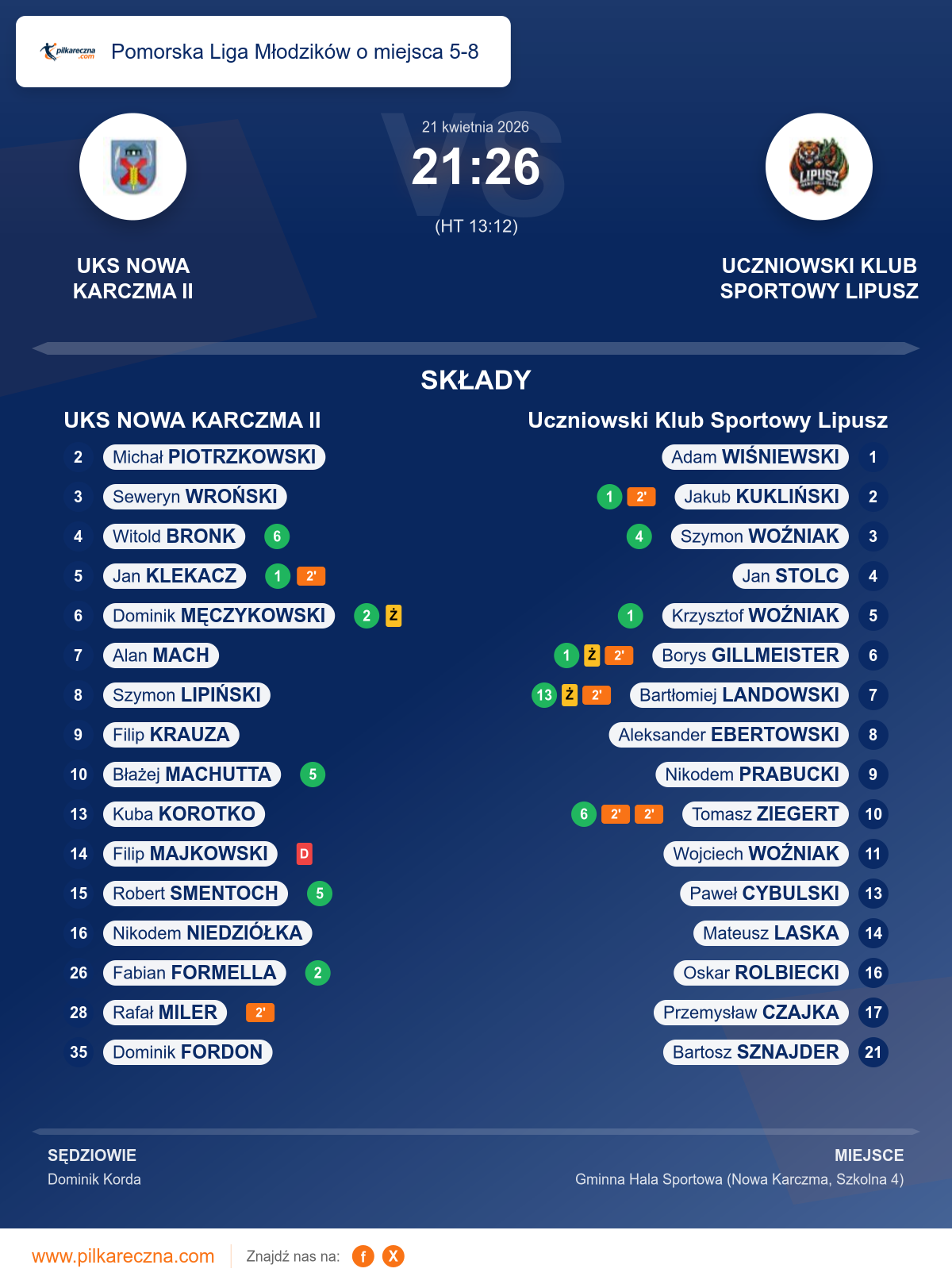 UKS NOWA KARCZMA II 21–26 Uczniowski Klub Sportowy Lipusz