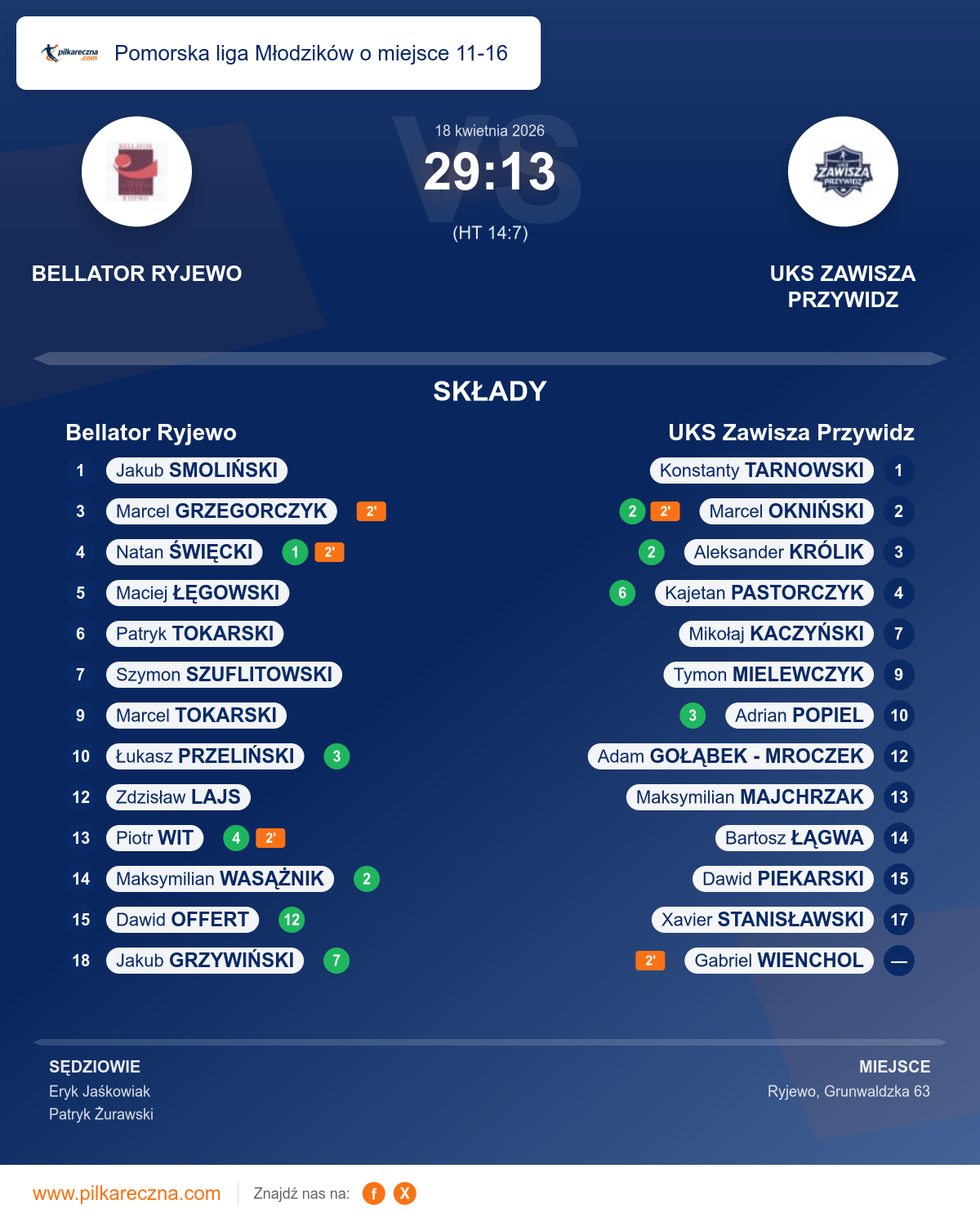 Bellator Ryjewo 29–13 UKS Zawisza Przywidz