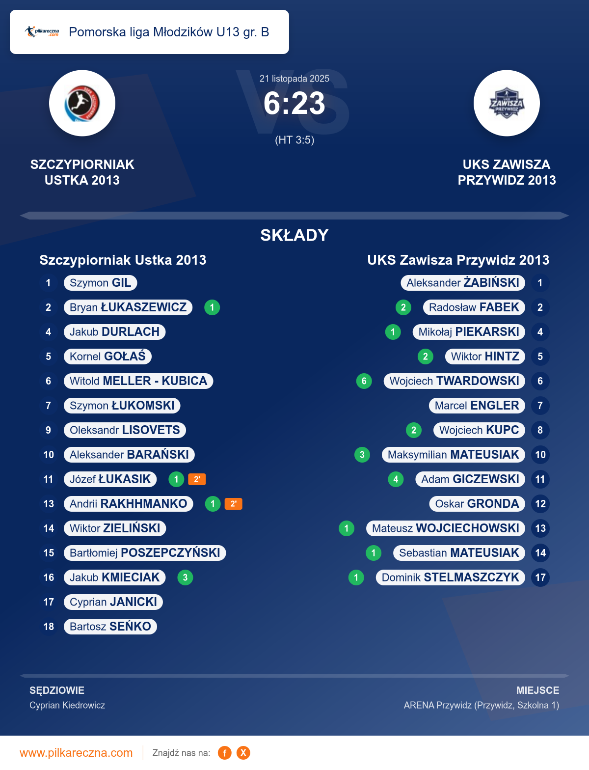 Szczypiorniak Ustka 2013 6–23 UKS Zawisza Przywidz 2013