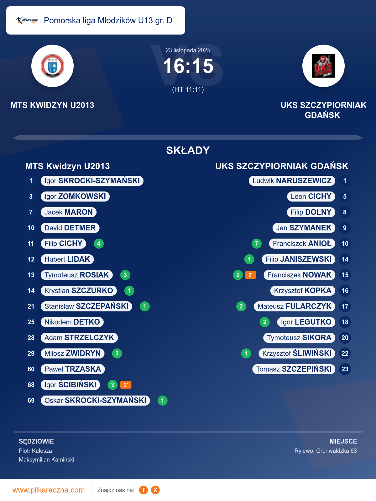 MTS Kwidzyn U2013 16–15 UKS SZCZYPIORNIAK GDAŃSK
