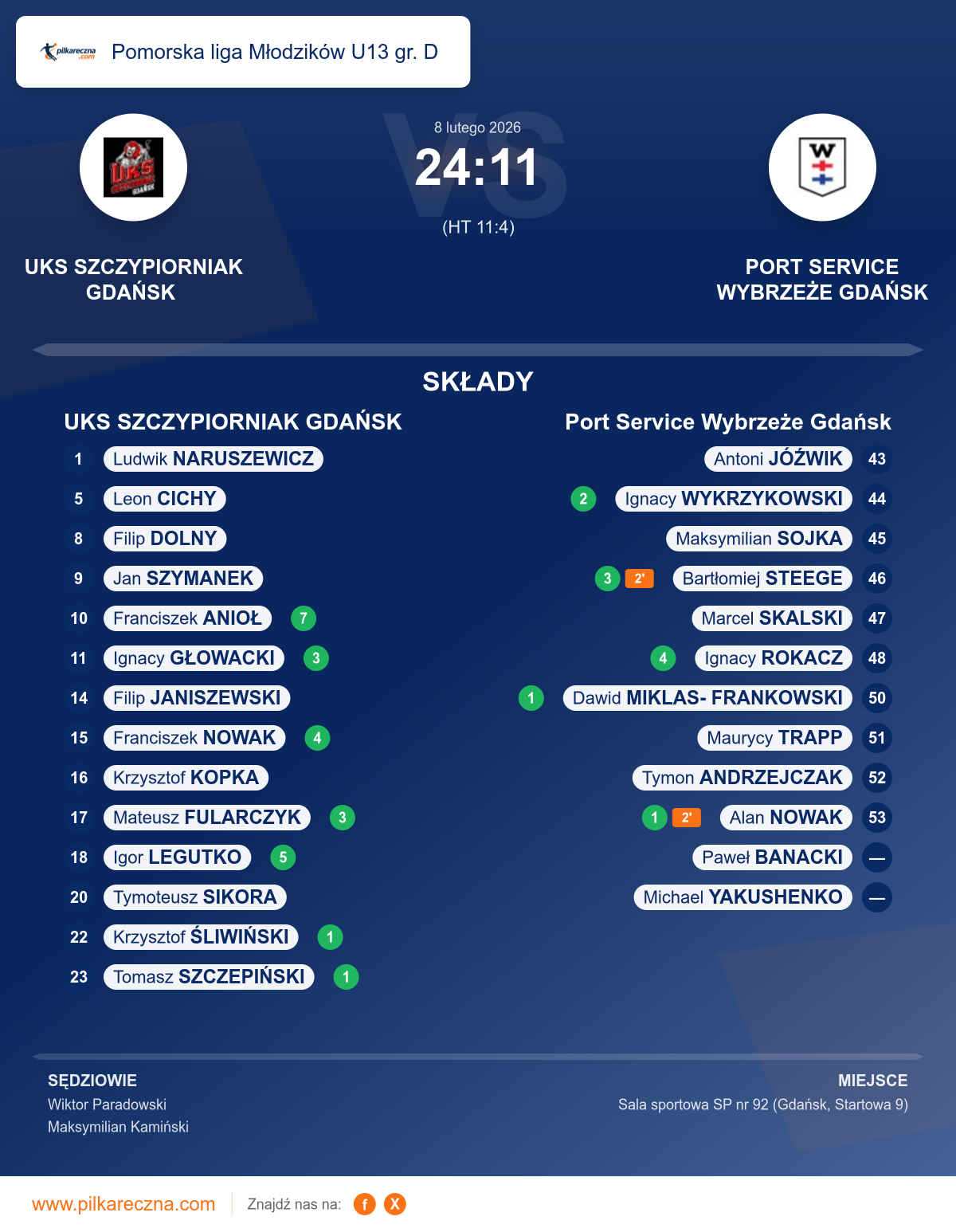 Sędziowali: Wiktor Paradowski, Maksymilian Kamiński