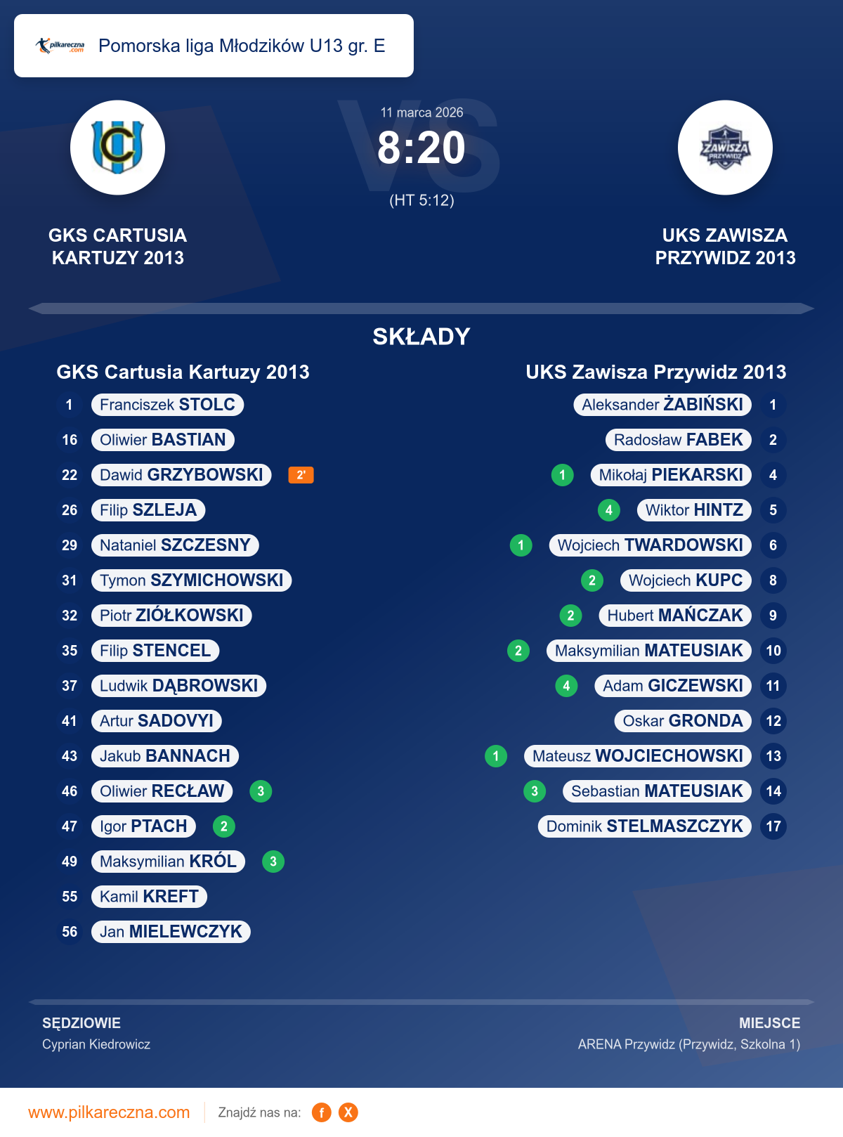 GKS Cartusia Kartuzy 2013 8–20 UKS Zawisza Przywidz 2013