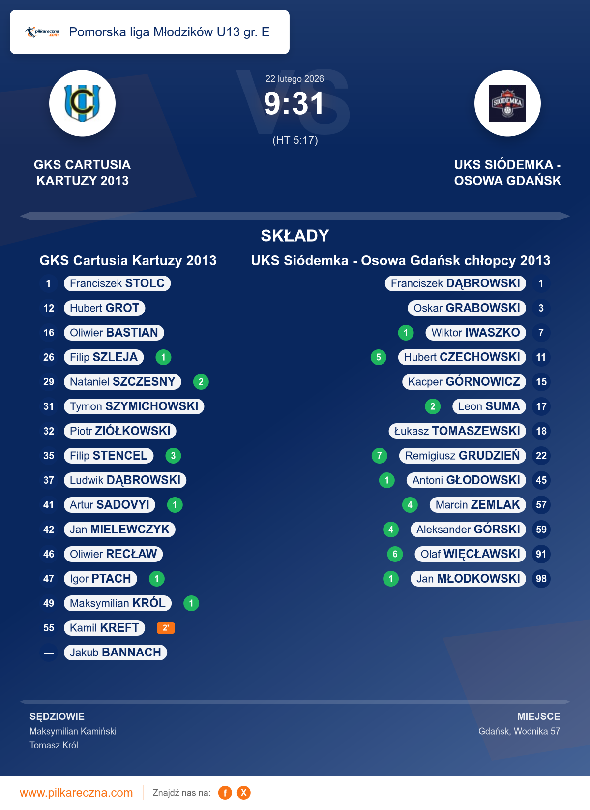 GKS Cartusia Kartuzy 2013 9–31 UKS Siódemka - Osowa Gdańsk chłopcy 2013