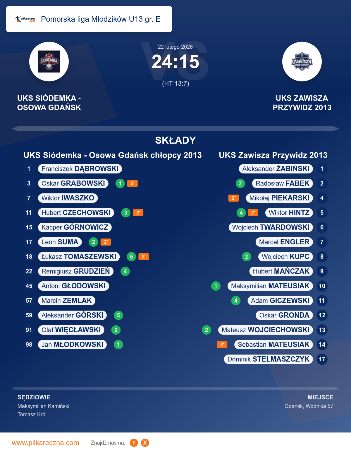 Sędziowali: Maksymilian Kamiński, Tomasz Król