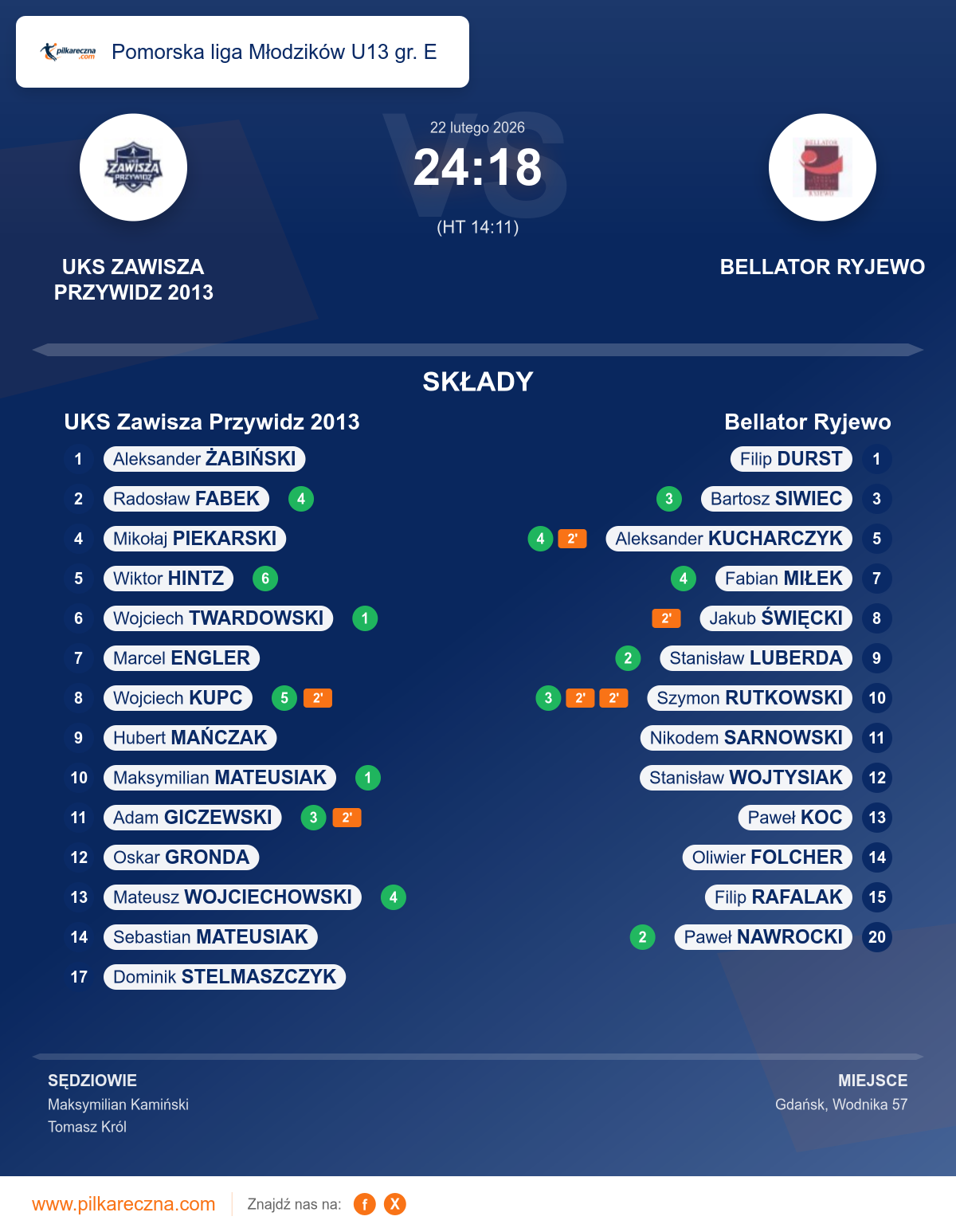 UKS Zawisza Przywidz 2013 24–18 Bellator Ryjewo