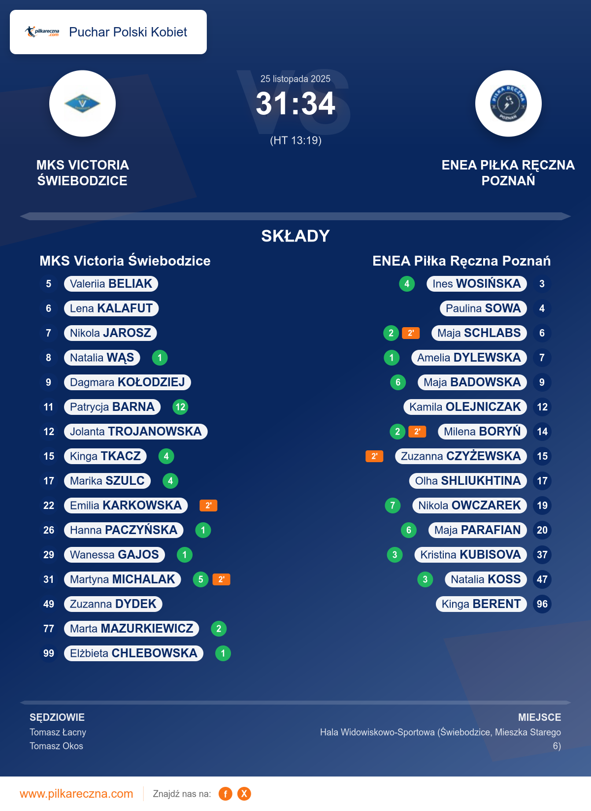 MKS Victoria Świebodzice 31–34 ENEA Piłka Ręczna Poznań