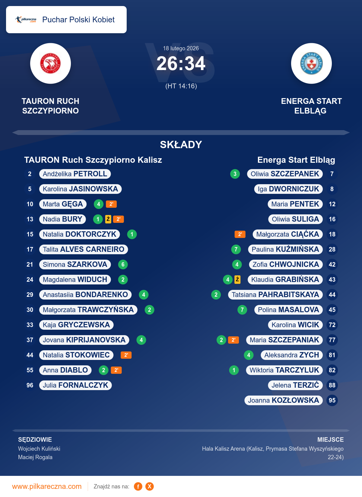 TAURON Ruch Szczypiorno Kalisz 26–34 Energa Start Elbląg