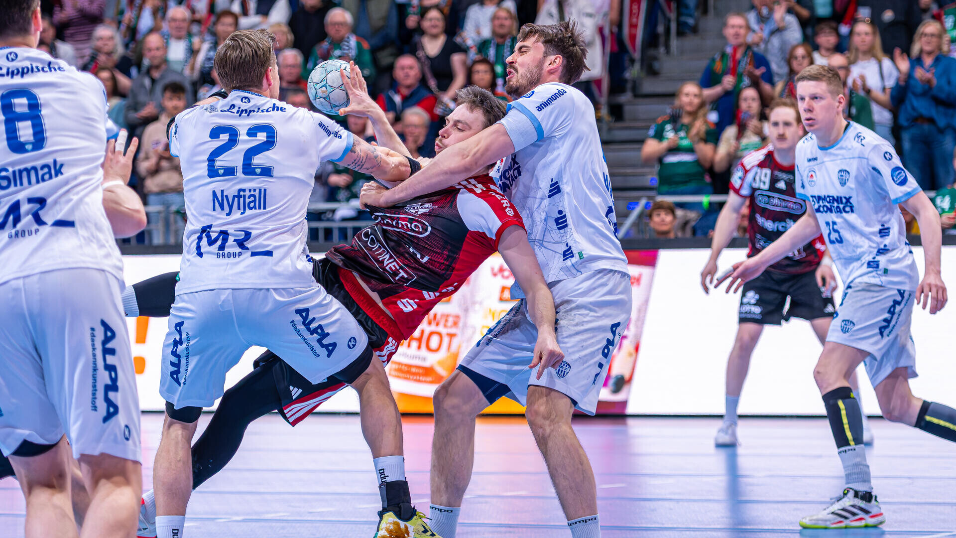 Recken znów jednak przyspieszyli i w 53. minucie wyrównali na 27:27. Dwie minuty przed końcem goście wyszli na prowadzenie 30:29. Dodatkowo Lemgo musiało grać w osłabieniu po dwuminutowej karze dla Nicolaia Theilingera. Mimo to Joel Willecke 50 sekund przed końcową syreną doprowadził do remisu 30:30. Gospodarze z ogromnym zaangażowaniem obronili następnie grę w systemie pięciu przeciwko siedmiu.
