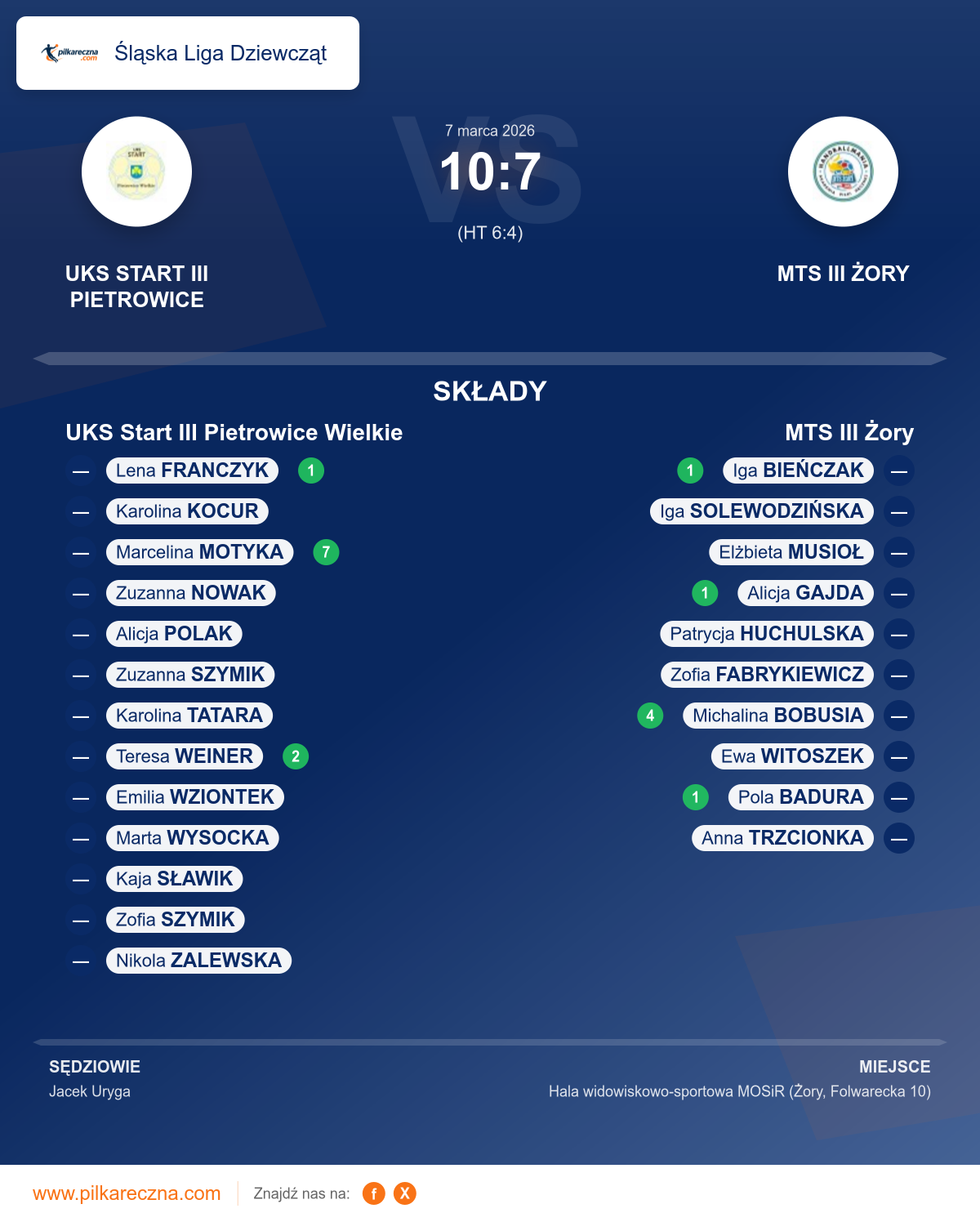 UKS Start III Pietrowice Wielkie 10–7 MTS III Żory