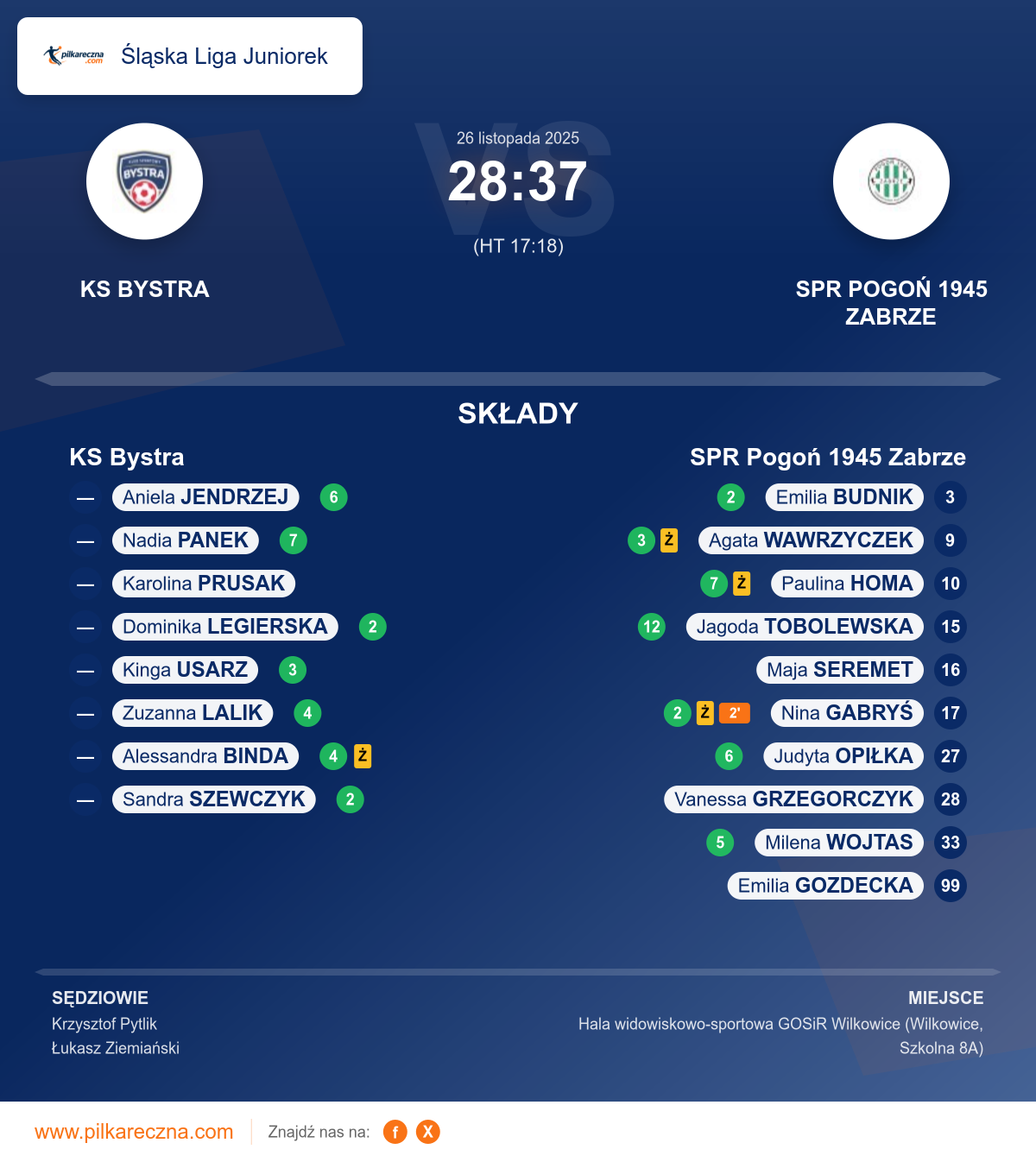 Zawodnicy: Jagoda Tobolewska (12), Paulina Homa (7), Judyta Opiłka (6), Milena Wojtas (5), Agata Wawrzyczek (3), Emilia Budnik (2), Nina Gabryś (2), Emilia Gozdecka, Maja Seremet, Vanessa Grzegorczyk