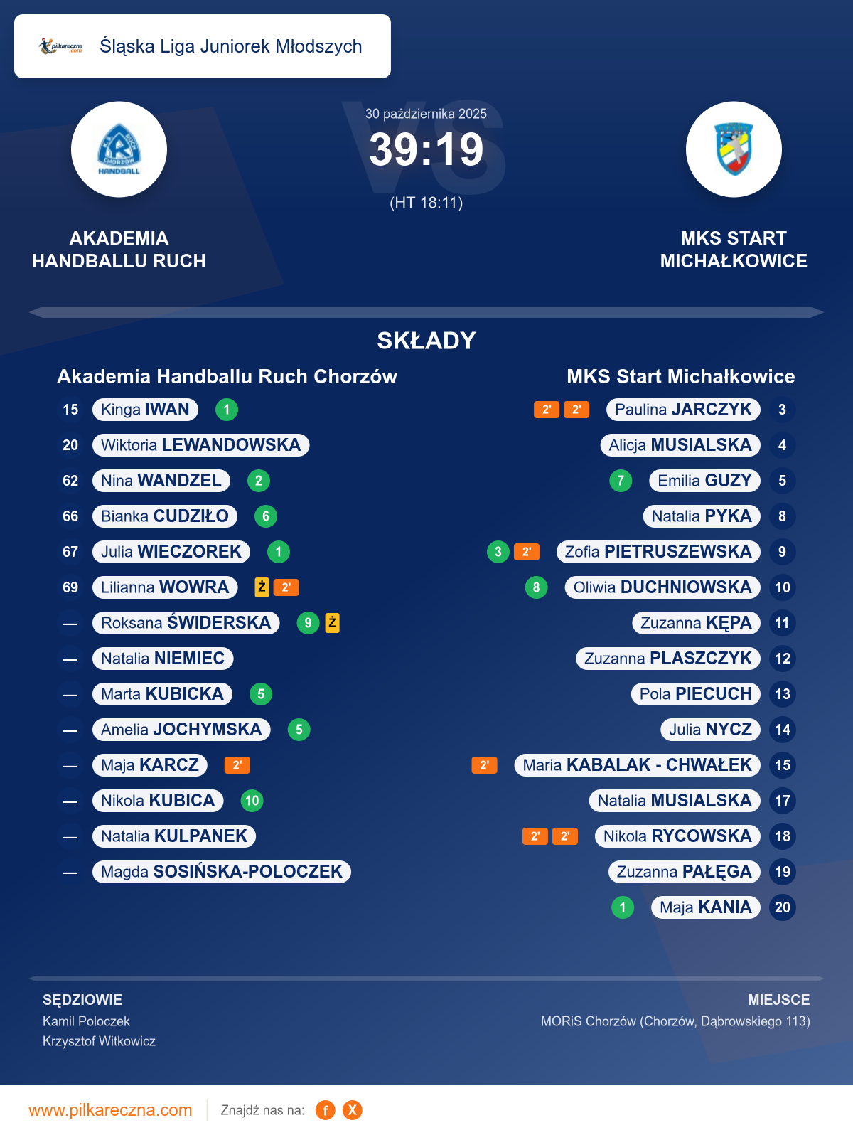 Akademia Handballu Ruch Chorzów 39–19 MKS Start Michałkowice