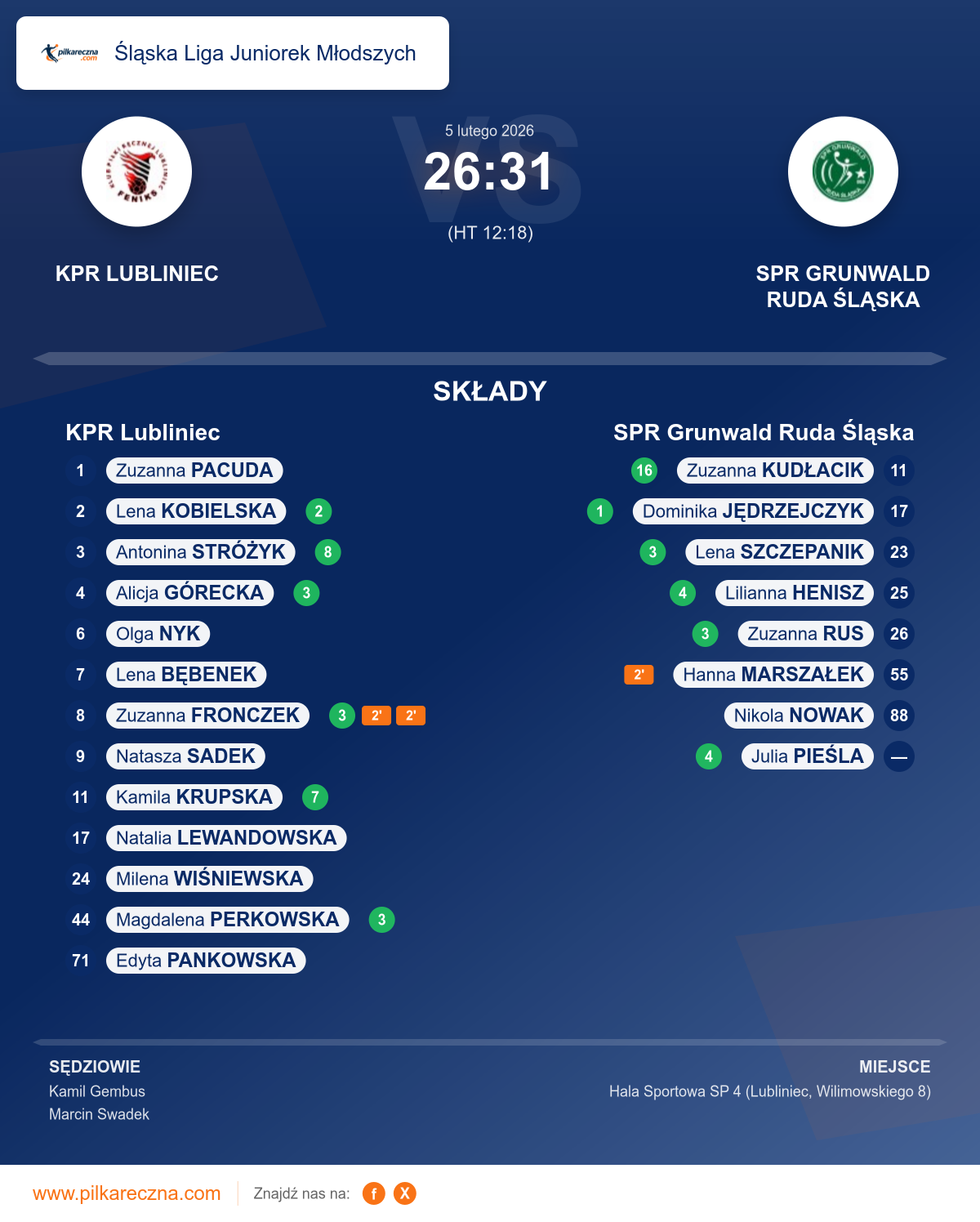Sędziowali: Kamil Gembus, Marcin Swadek