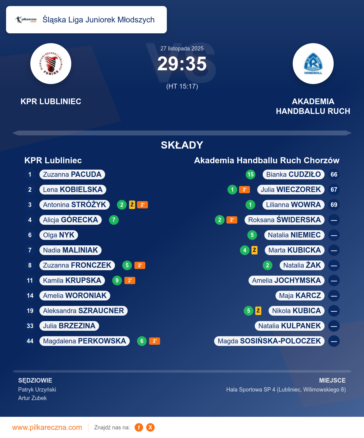 KPR Lubliniec 29–35 Akademia Handballu Ruch Chorzów