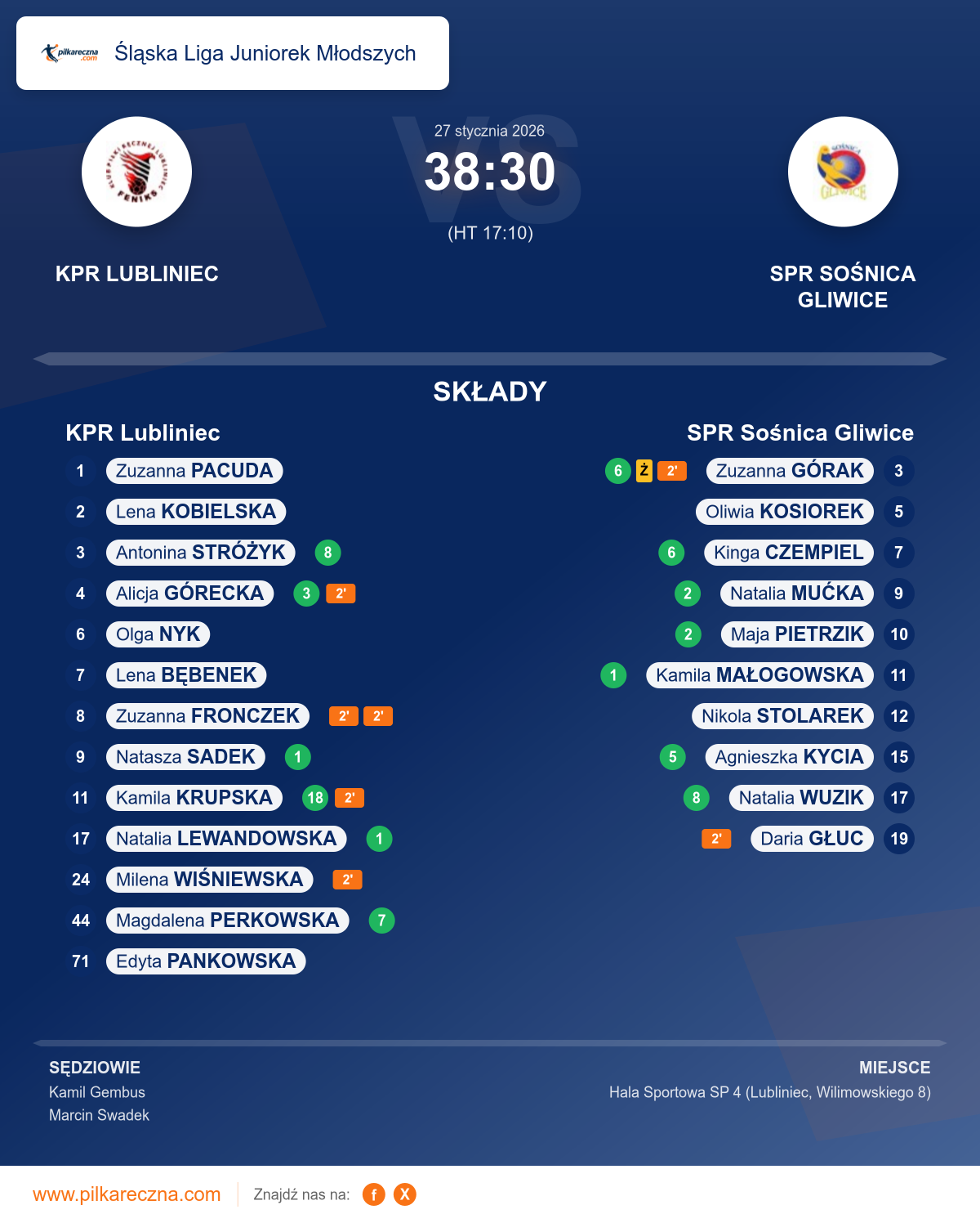 KPR Lubliniec 38–30 SPR Sośnica Gliwice