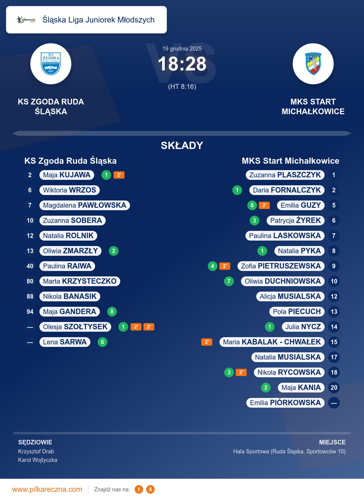 KS Zgoda Ruda Śląska 18–28 MKS Start Michałkowice