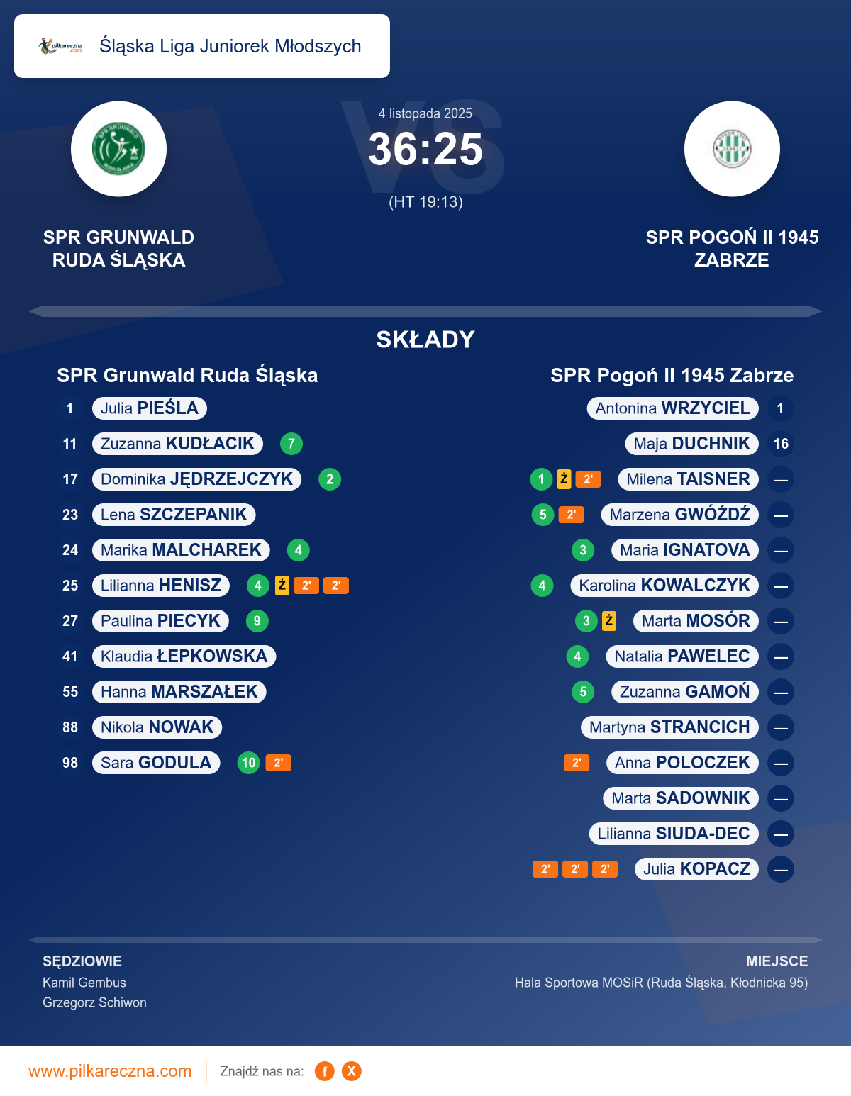 Wynik: 36–25 (HT 19–13)