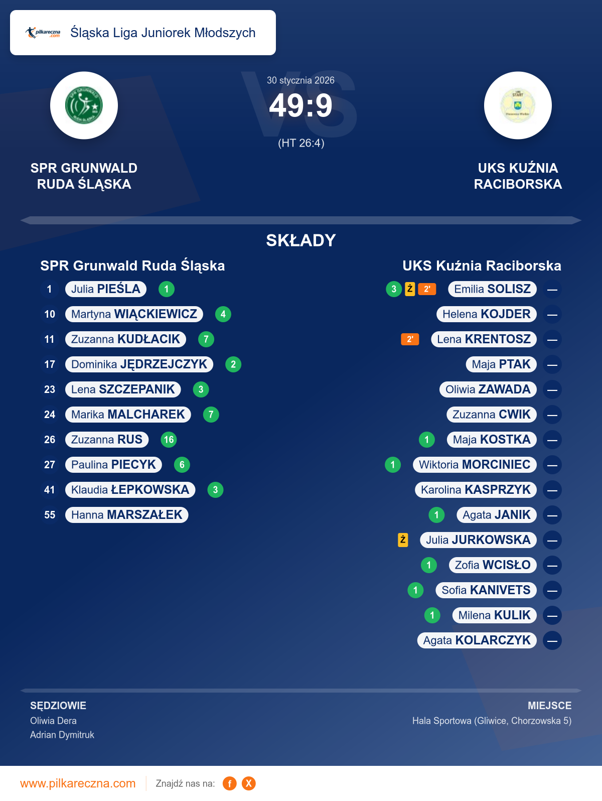 Zawodnicy: Zuzanna Rus (16), Marika Malcharek (7), Zuzanna Kudłacik (7), Paulina Piecyk (6), Martyna Wiąckiewicz (4), Klaudia Łepkowska (3), Lena Szczepanik (3), Dominika Jędrzejczyk (2), Hanna Marszałek