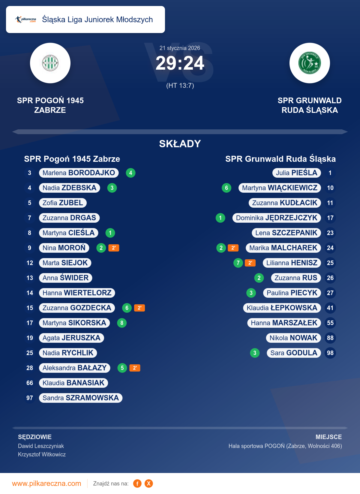 SPR Pogoń 1945 Zabrze 29–24 SPR Grunwald Ruda Śląska
