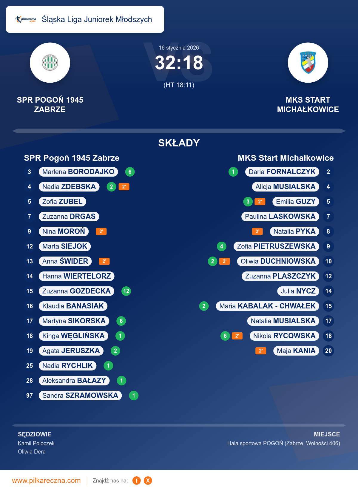 SPR Pogoń 1945 Zabrze 32–18 MKS Start Michałkowice