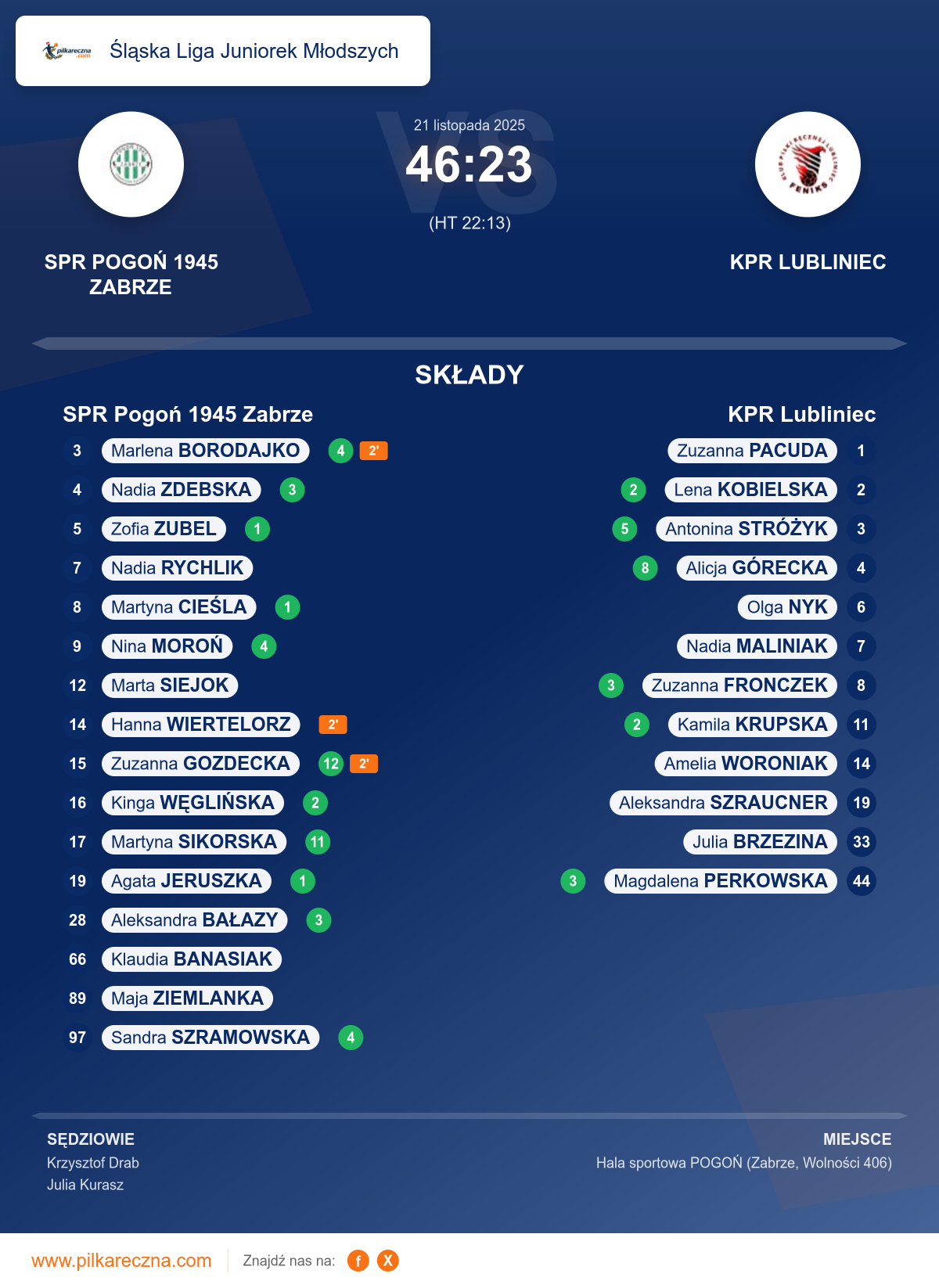 SPR Pogoń 1945 Zabrze 46–23 KPR Lubliniec