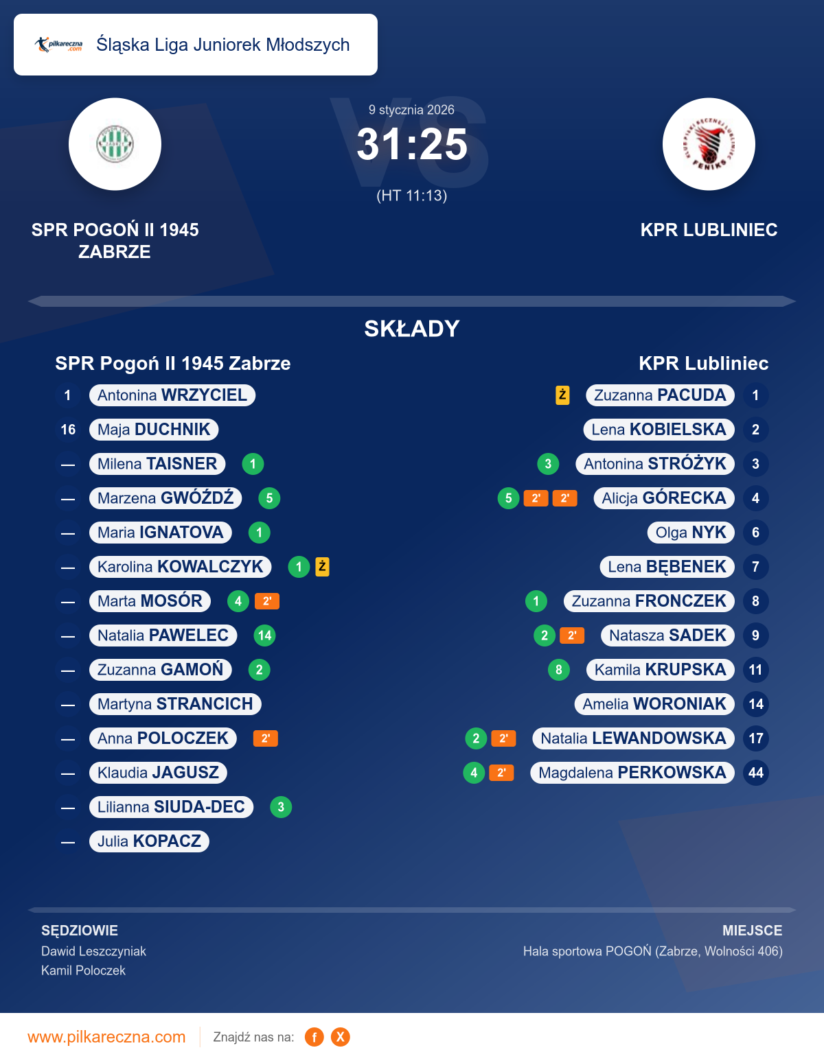 Sędziowali: Dawid Leszczyniak, Kamil Poloczek