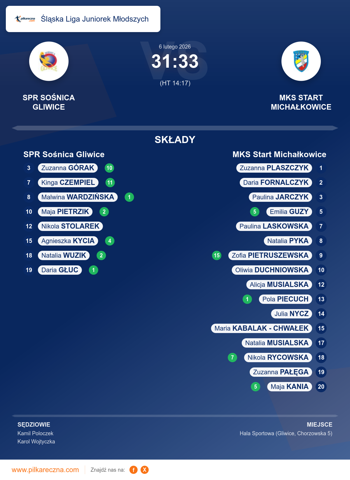 SPR Sośnica Gliwice 31–33 MKS Start Michałkowice