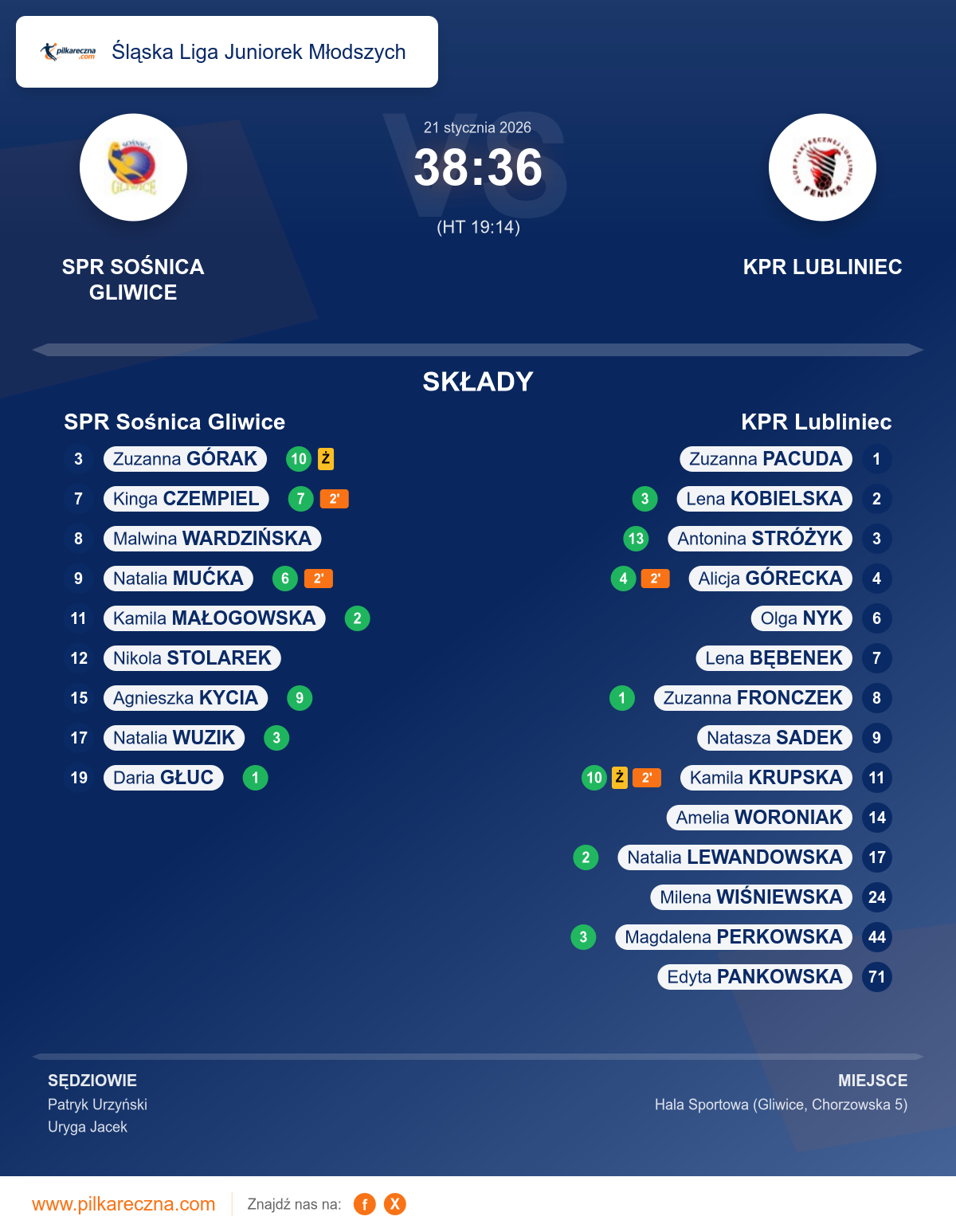 SPR Sośnica Gliwice 38–36 KPR Lubliniec