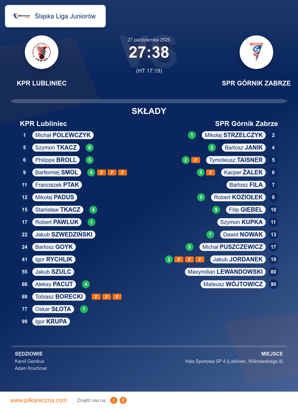 Sędziowali: Kamil Gembus, Adam Krochmal