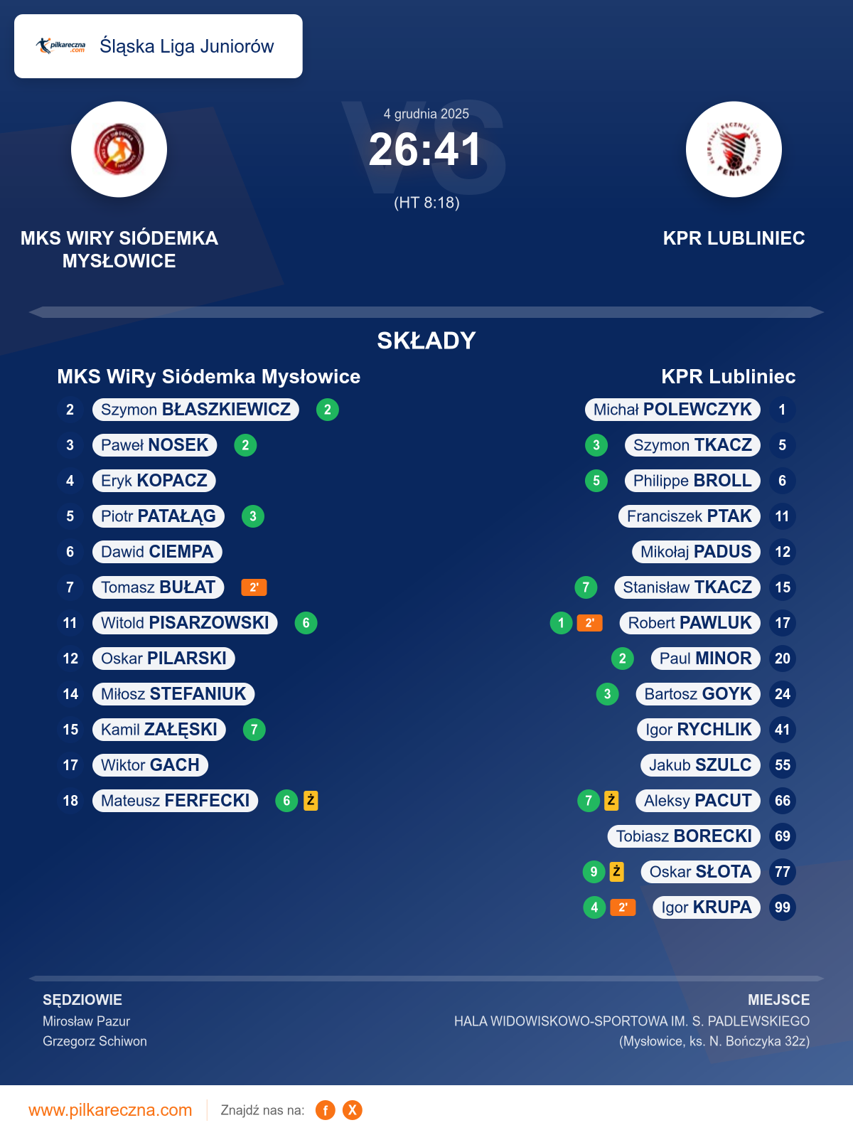 MKS WiRy Siódemka Mysłowice 26–41 KPR Lubliniec