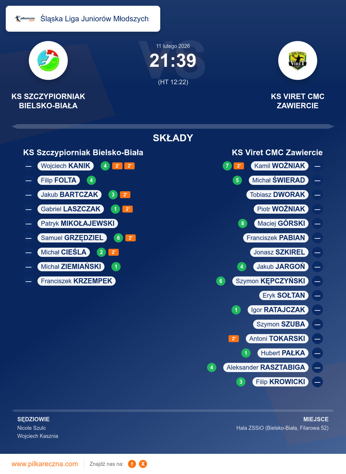 Zawodnicy: Samuel Grzędziel (6), Filip Folta (4), Wojciech Kanik (4), Jakub Bartczak (3), Michał Cieśla (2), Gabriel Laszczak (1), Michał Ziemiański (1), Franciszek Krzempek, Patryk Mikołajewski