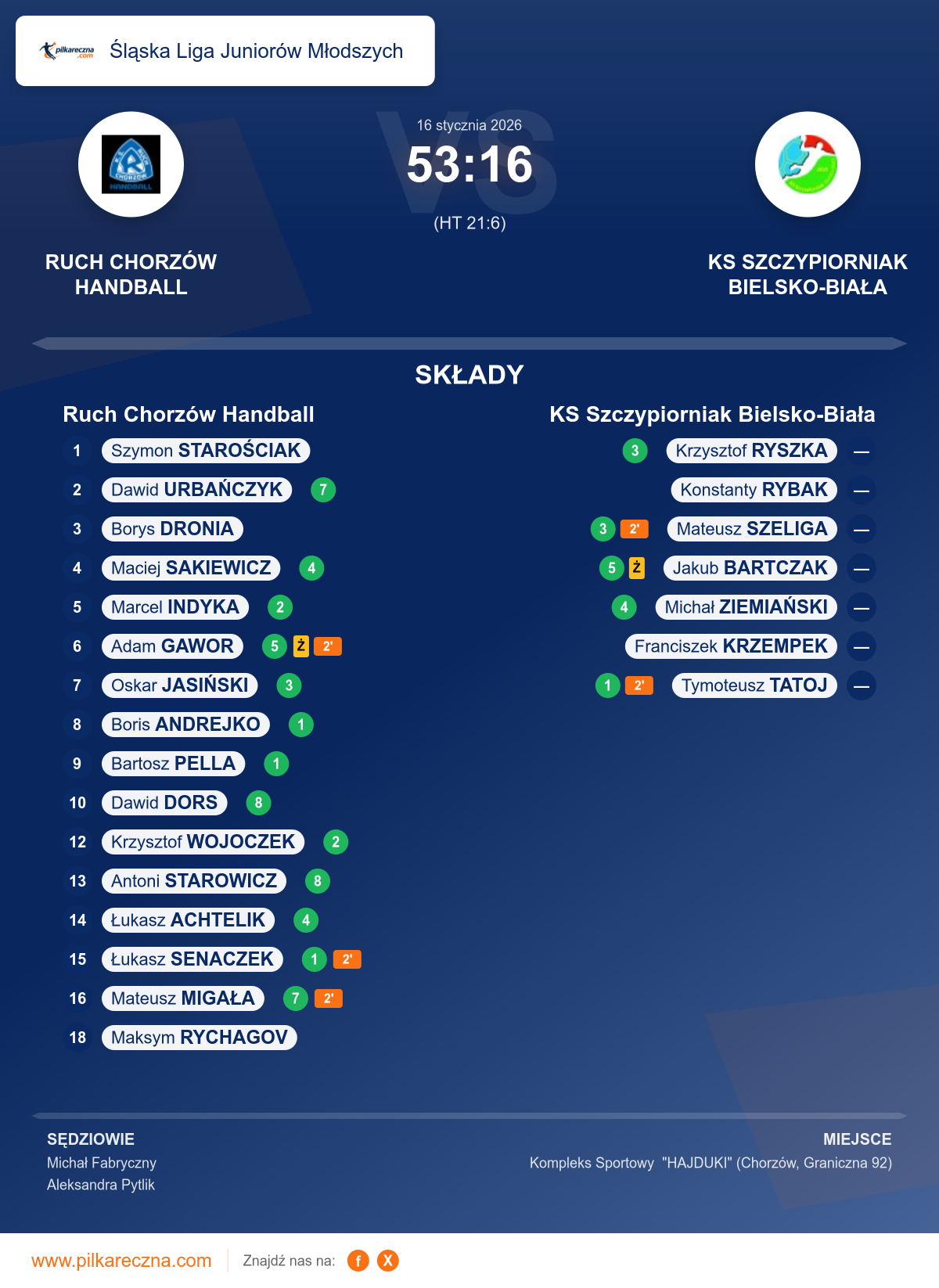 Ruch Chorzów Handball 53–16 KS Szczypiorniak Bielsko-Biała