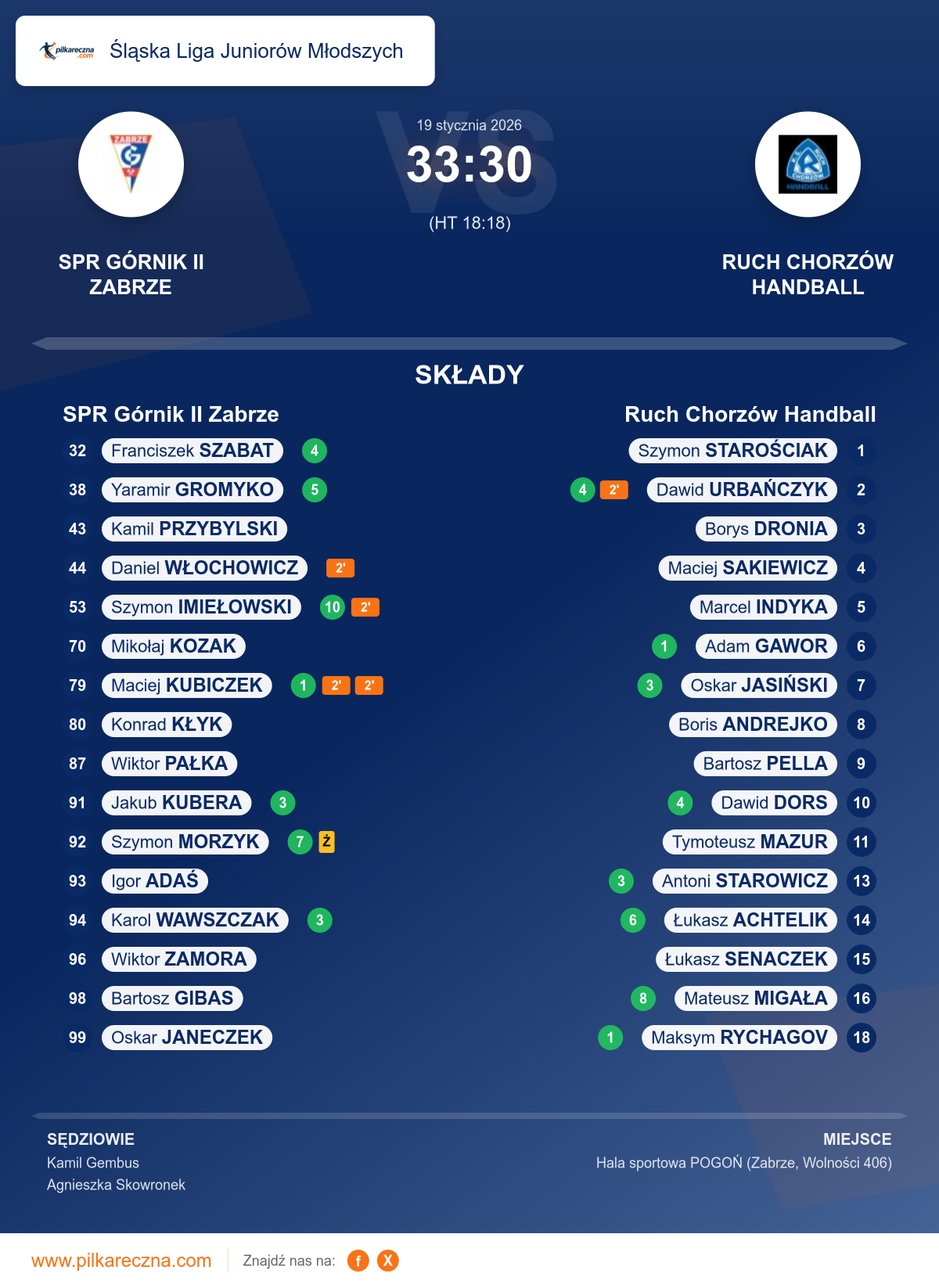 SPR Górnik II Zabrze 33–30 Ruch Chorzów Handball