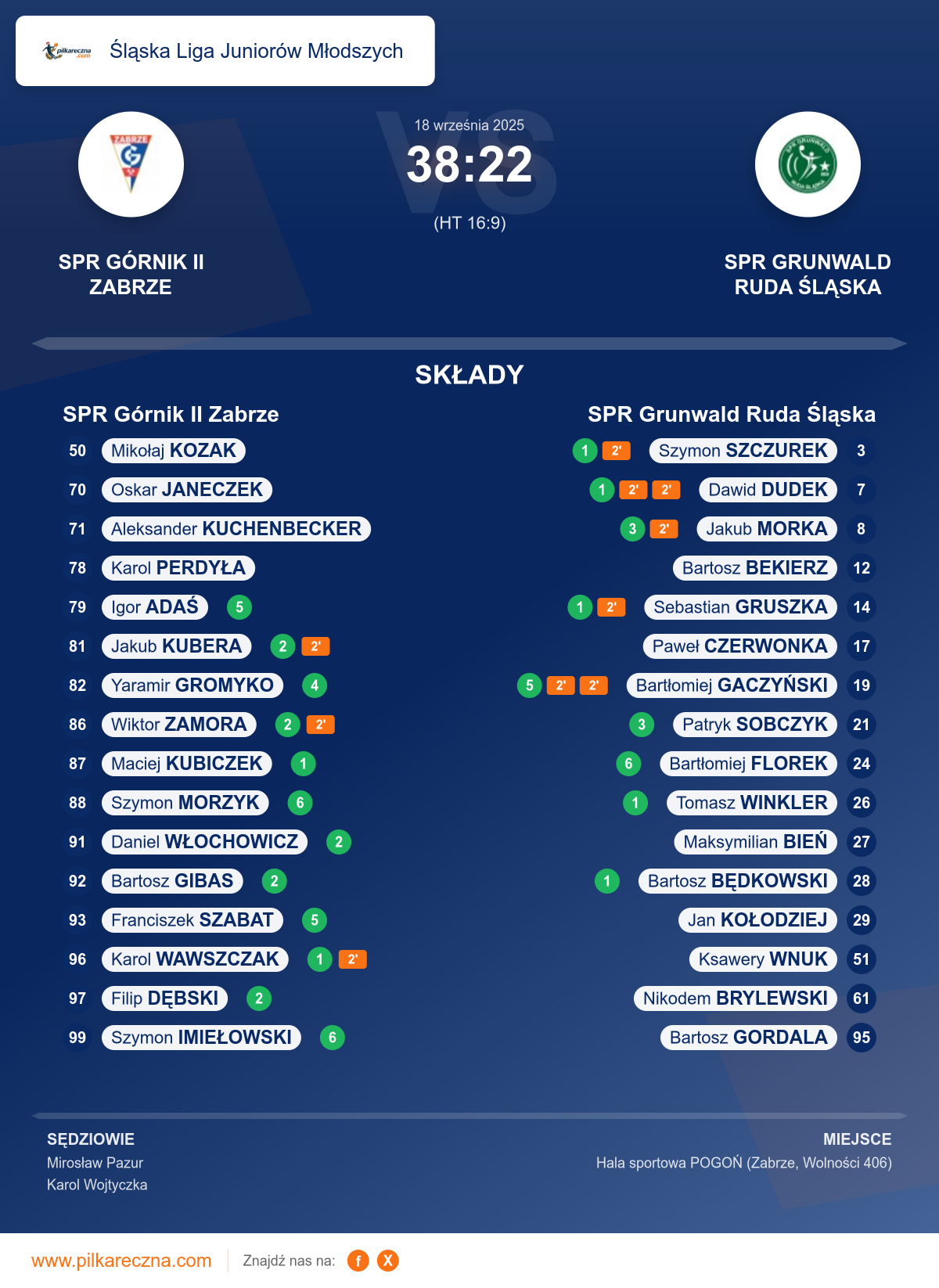 Zawodnicy: Szymon Imiełowski (6), Szymon Morzyk (6), Franciszek Szabat (5), Igor Adaś (5), Yaramir Gromyko (4), Bartosz Gibas (2), Daniel Włochowicz (2), Filip Dębski (2), Jakub Kubera (2), Wiktor Zamora (2), Karol Wawszczak (1), Maciej Kubiczek (1), Aleksander Kuchenbecker, Karol Perdyła, Oskar Janeczek