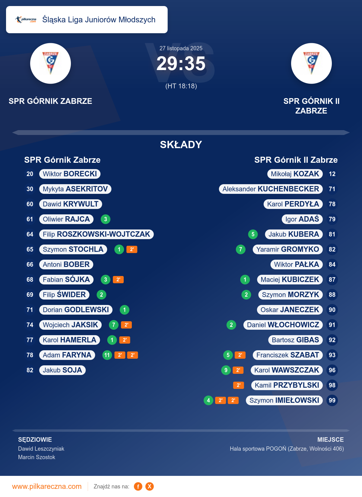 Sędziowali: Dawid Leszczyniak, Marcin Szostok