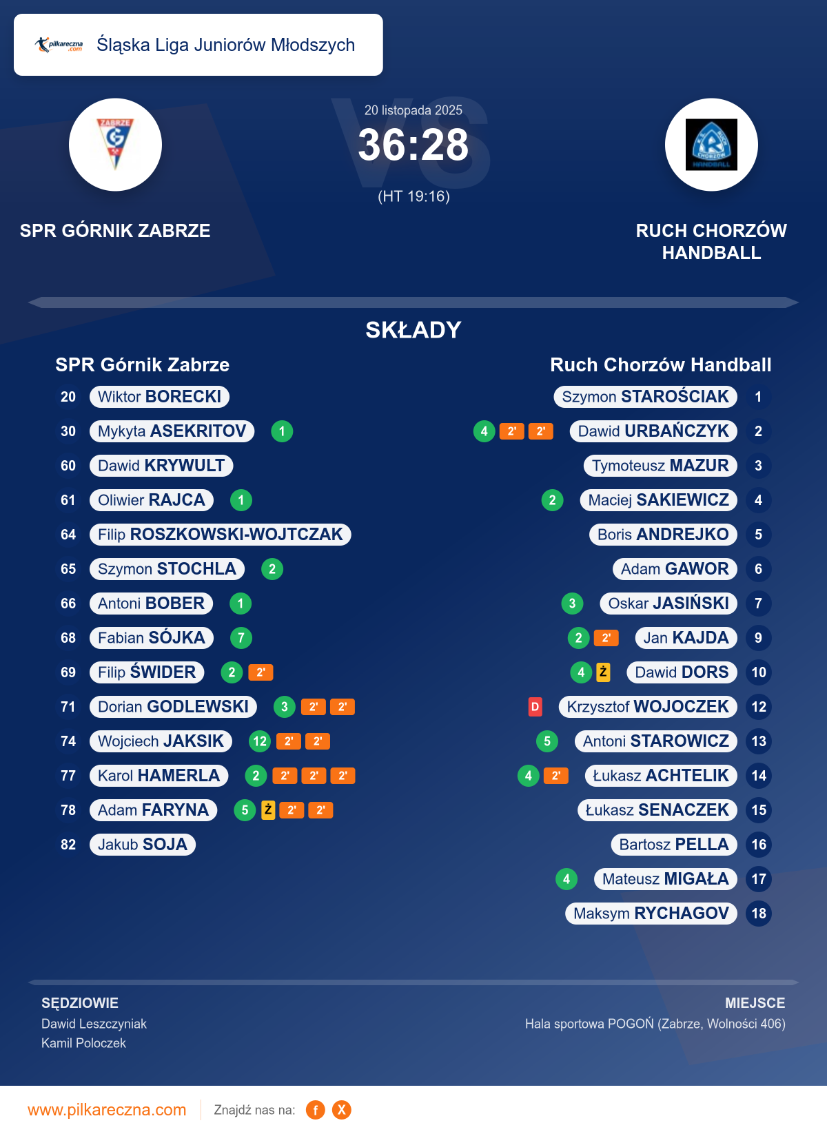 Sędziowali: Dawid Leszczyniak, Kamil Poloczek