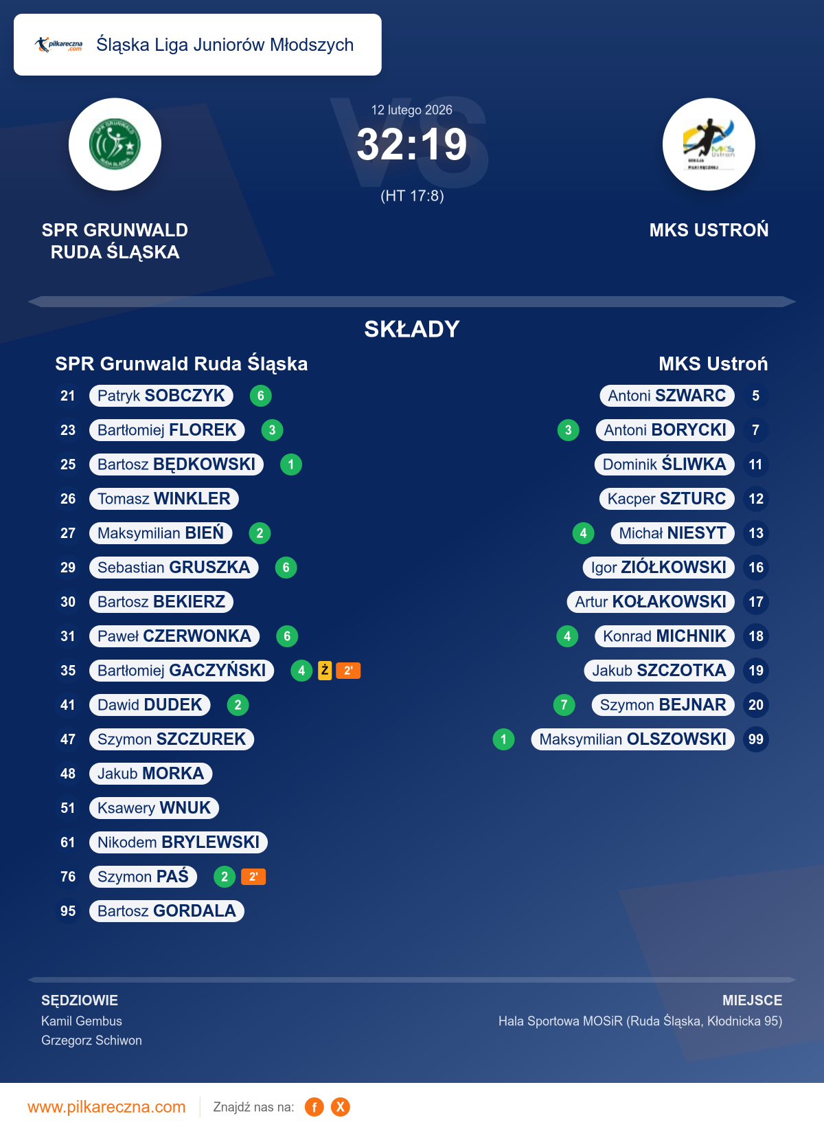SPR Grunwald Ruda Śląska 32–19 MKS Ustroń