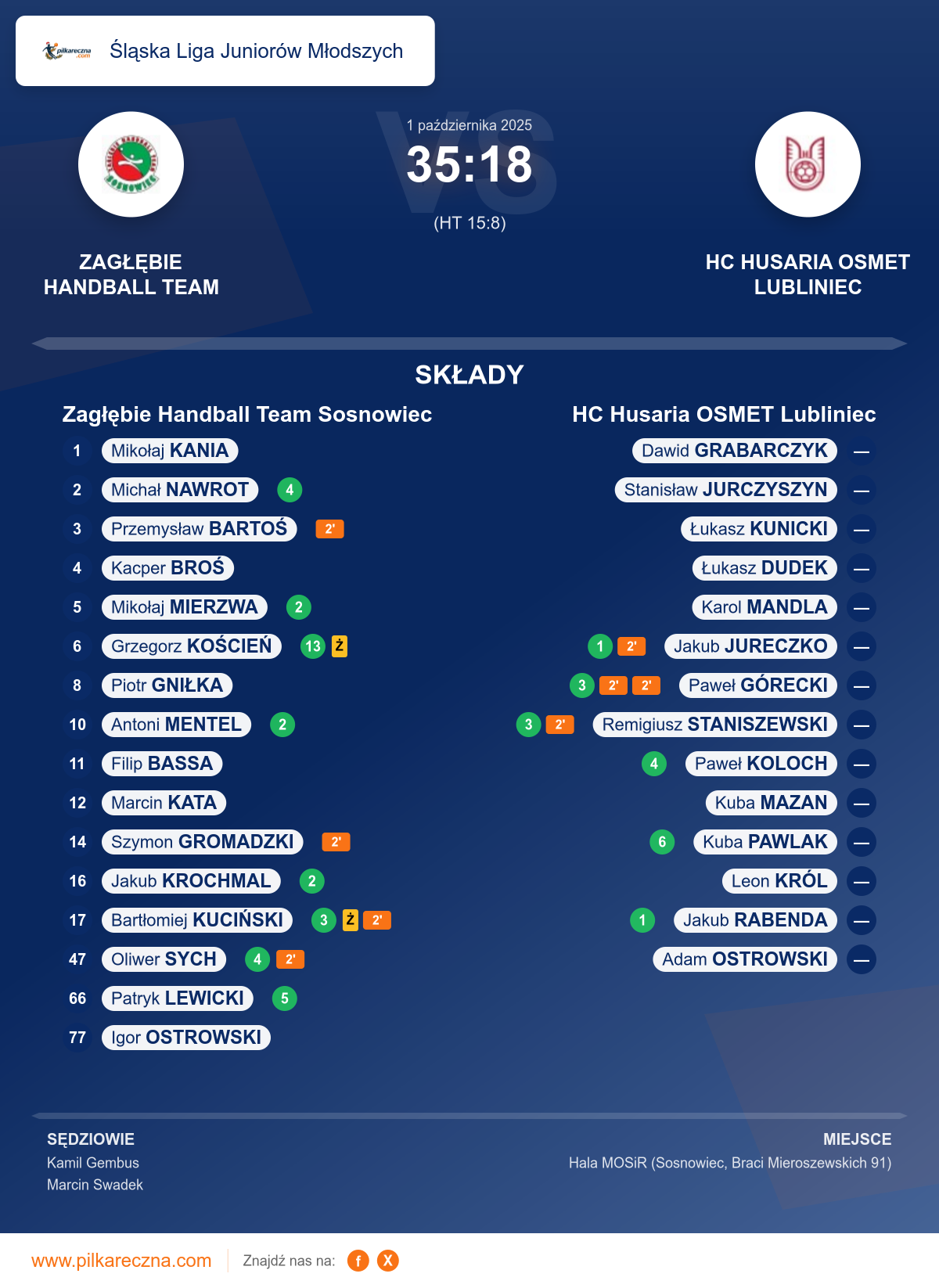 Sędziowali: Kamil Gembus, Marcin Swadek