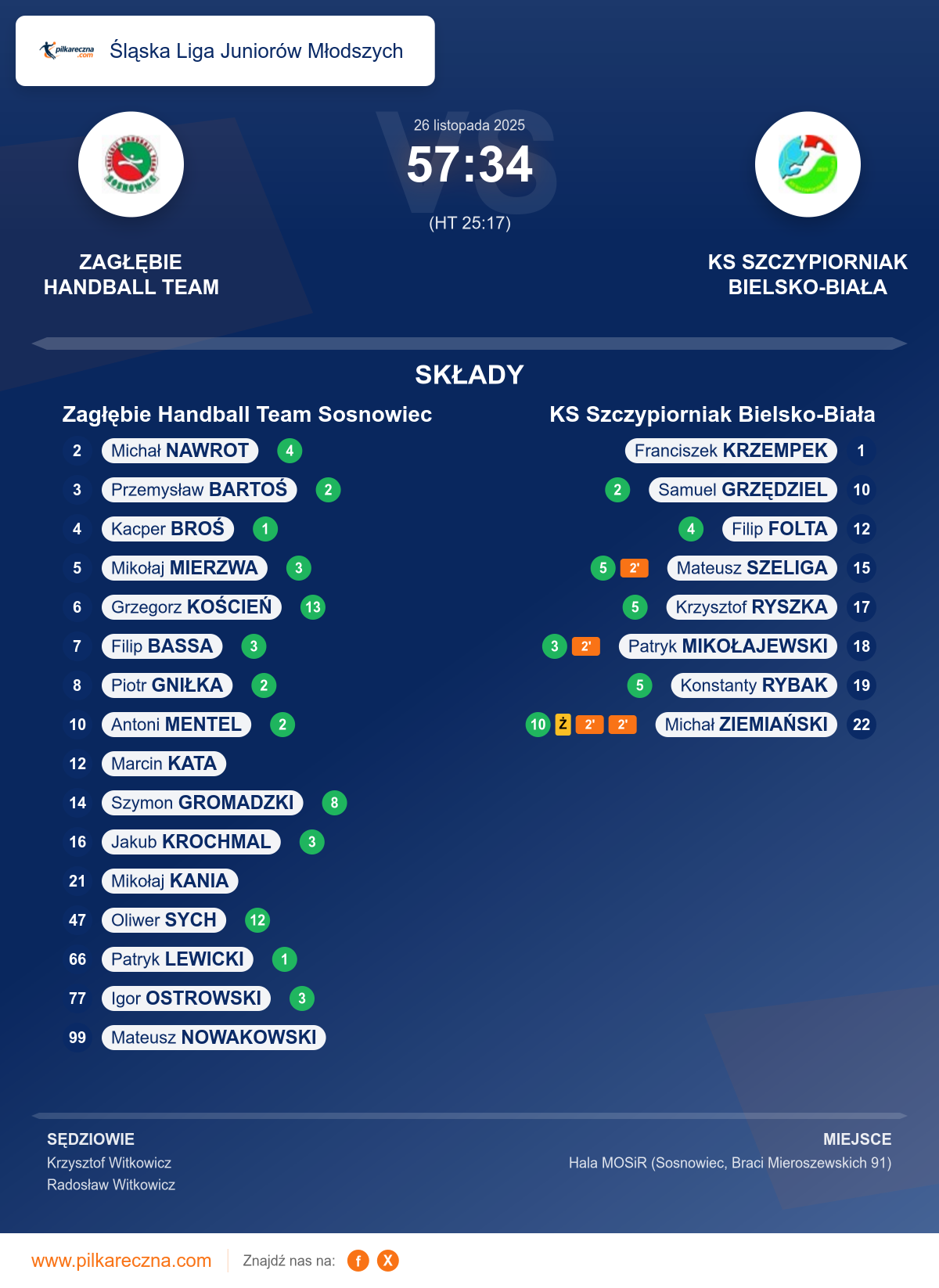 Zagłębie Handball Team Sosnowiec 57–34 KS Szczypiorniak Bielsko-Biała