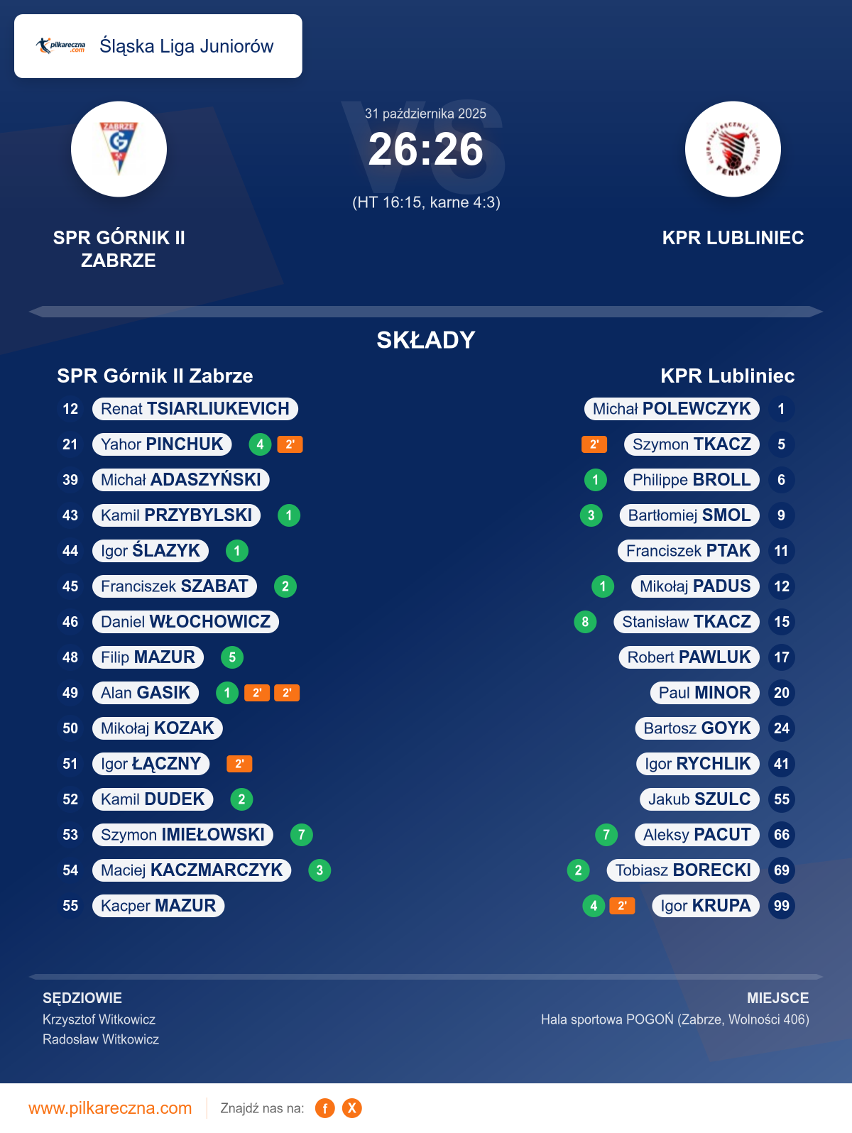 Sędziowali: Krzysztof Witkowicz, Radosław Witkowicz