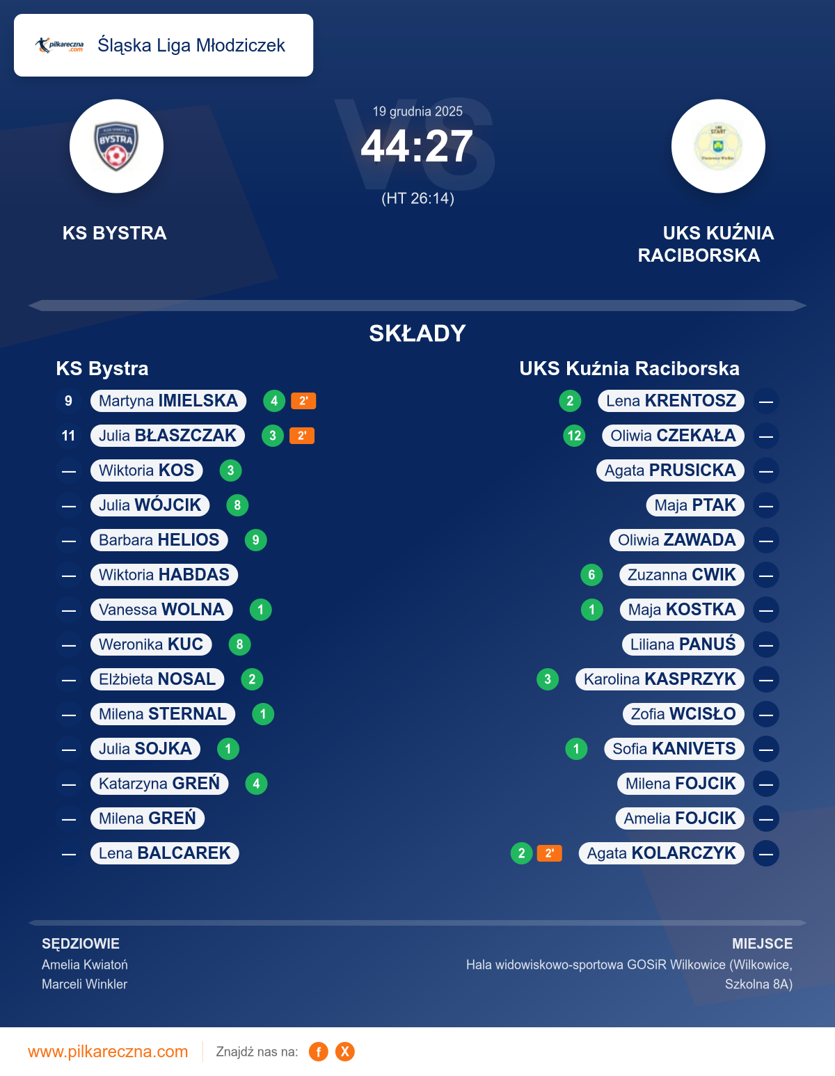 KS Bystra 44–27 UKS Kuźnia Raciborska
