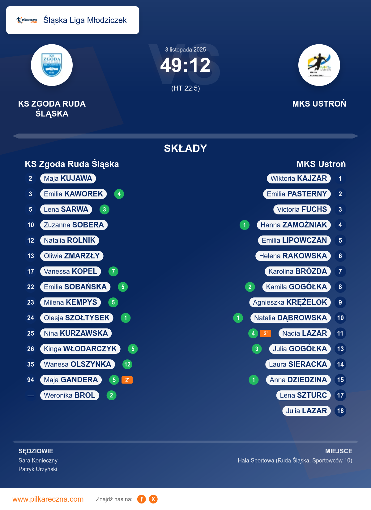 KS Zgoda Ruda Śląska 49–12 MKS Ustroń