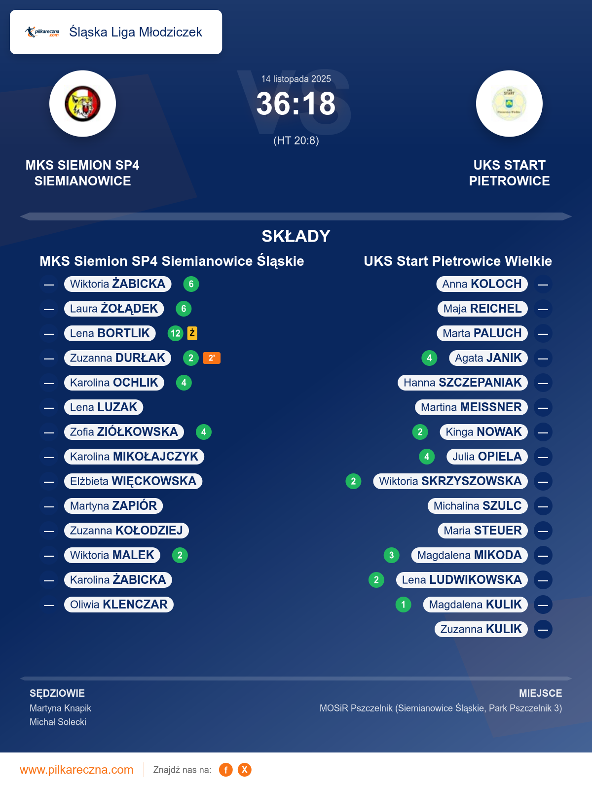 MKS Siemion SP4 Siemianowice Śląskie 36–18 UKS Start Pietrowice Wielkie