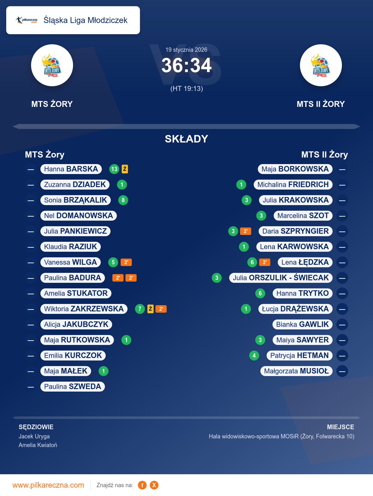 MTS Żory 36–34 MTS II Żory