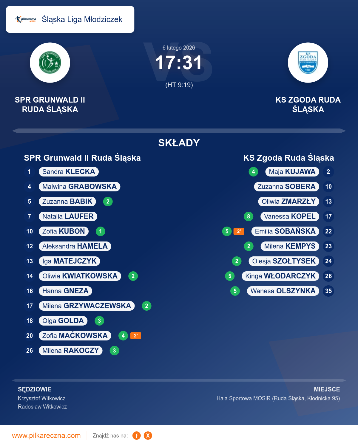 Sędziowali: Krzysztof Witkowicz, Radosław Witkowicz