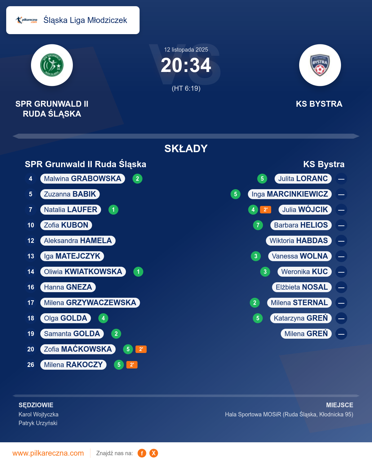 Sędziowali: Karol Wojtyczka, Patryk Urzyński