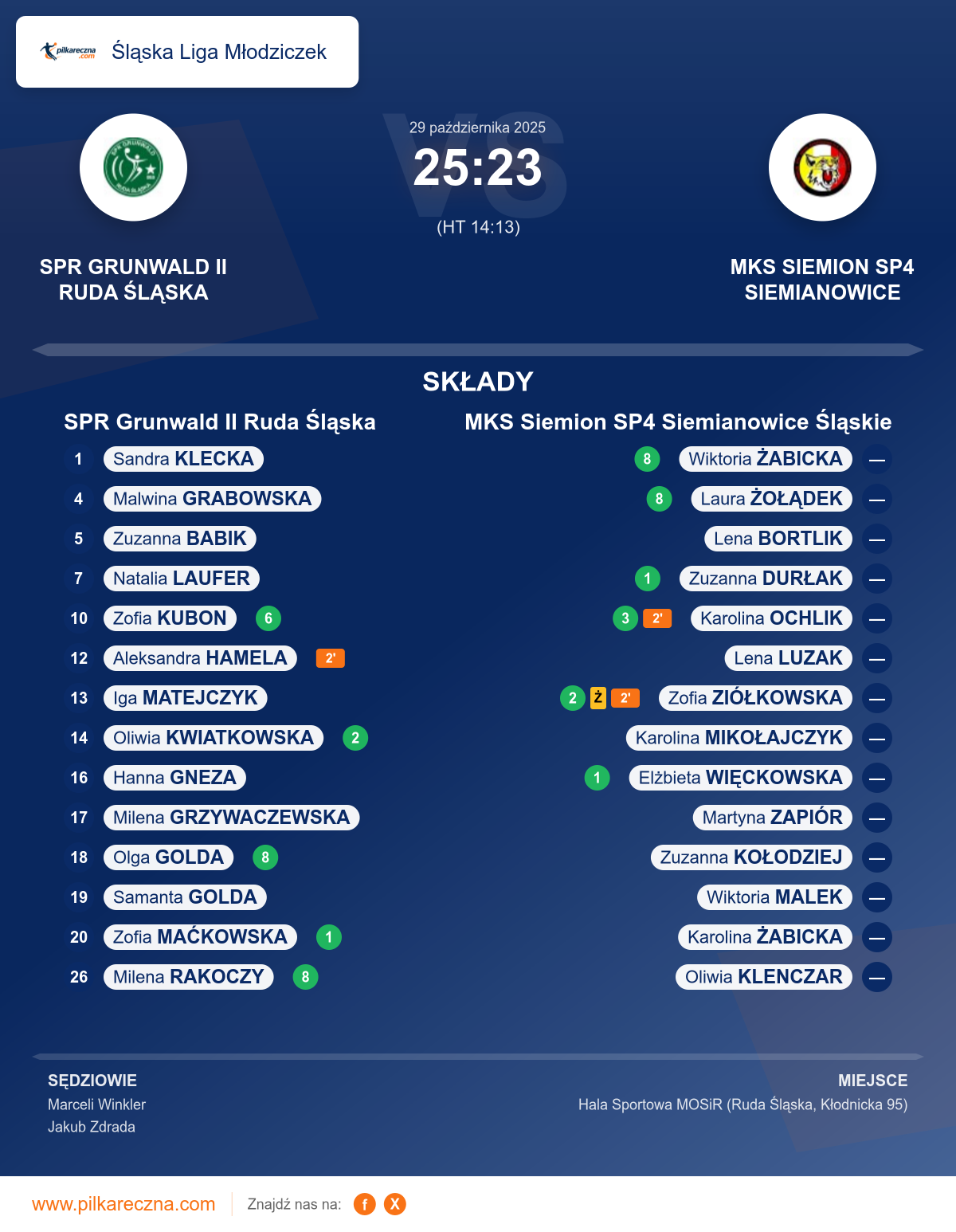 SPR Grunwald II Ruda Śląska 25–23 MKS Siemion SP4 Siemianowice Śląskie