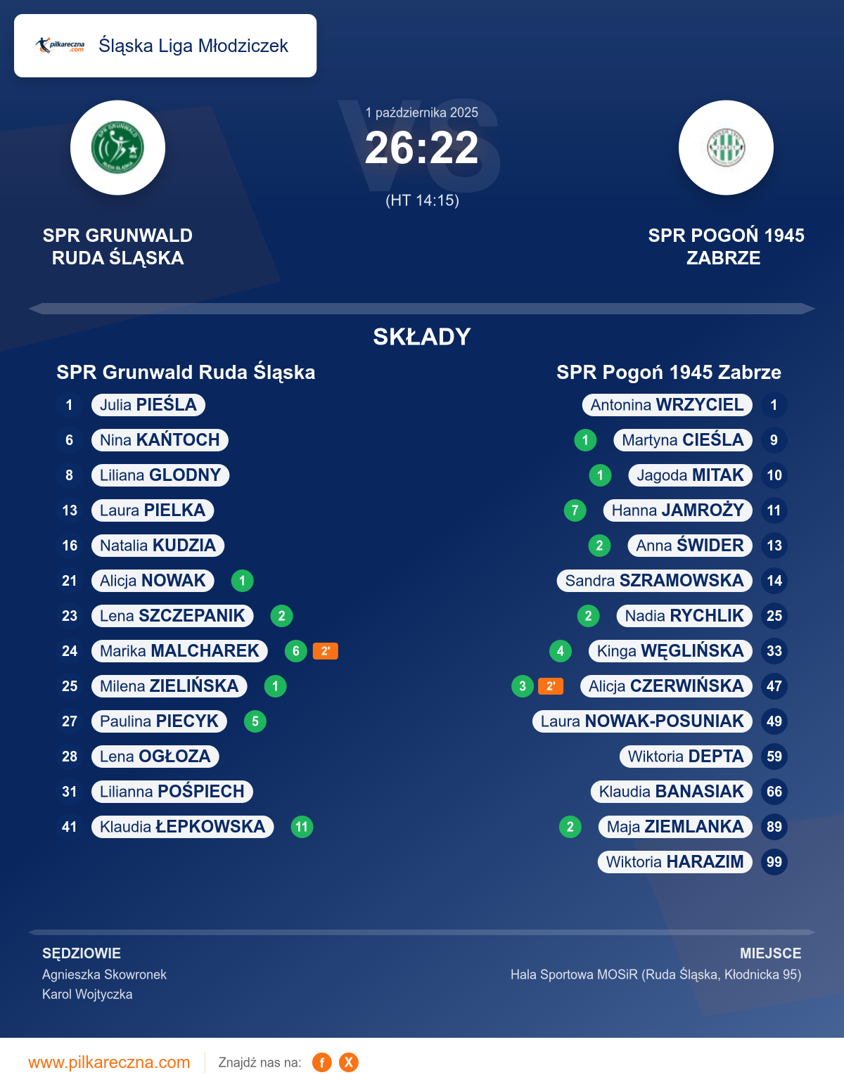 SPR Grunwald Ruda Śląska 26–22 SPR Pogoń 1945 Zabrze